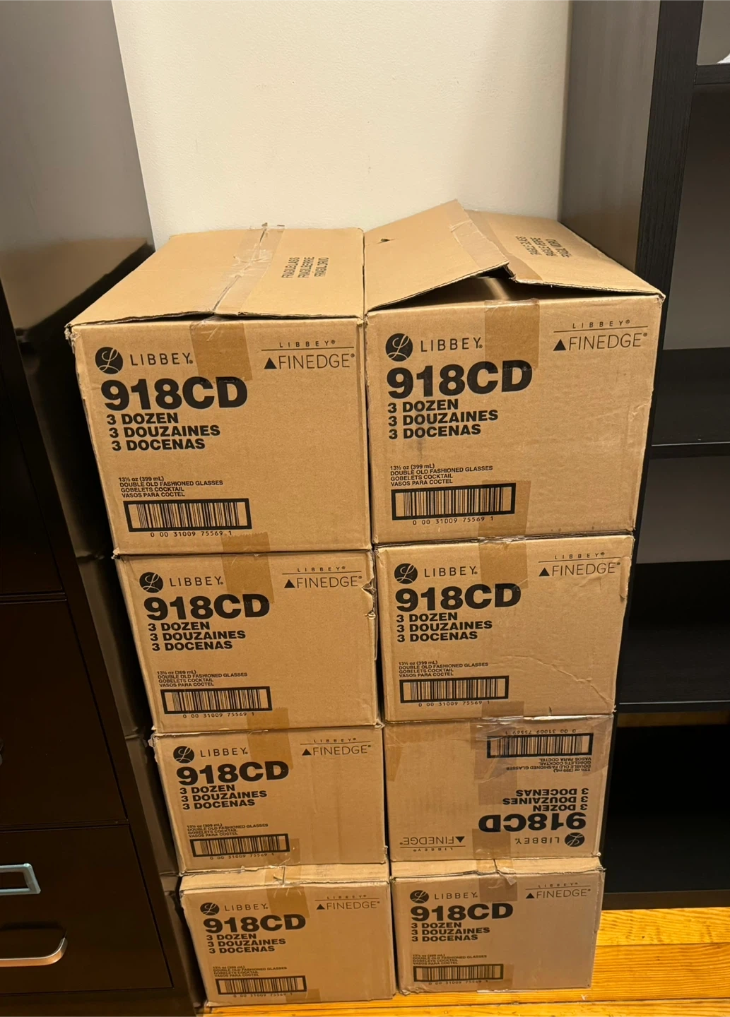 This listing is for Libbey 918CD Double Old Fashioned glasses. Each case contains 3 dozen (36) glasses. The glasses hold 13.5 oz (399 mL) and are designed for cocktails. They're perfect for stocking a bar or for a large gathering! They are also great for crafting or candle making. There are 288 glasses total between all 8 boxes. BRAND NEW!