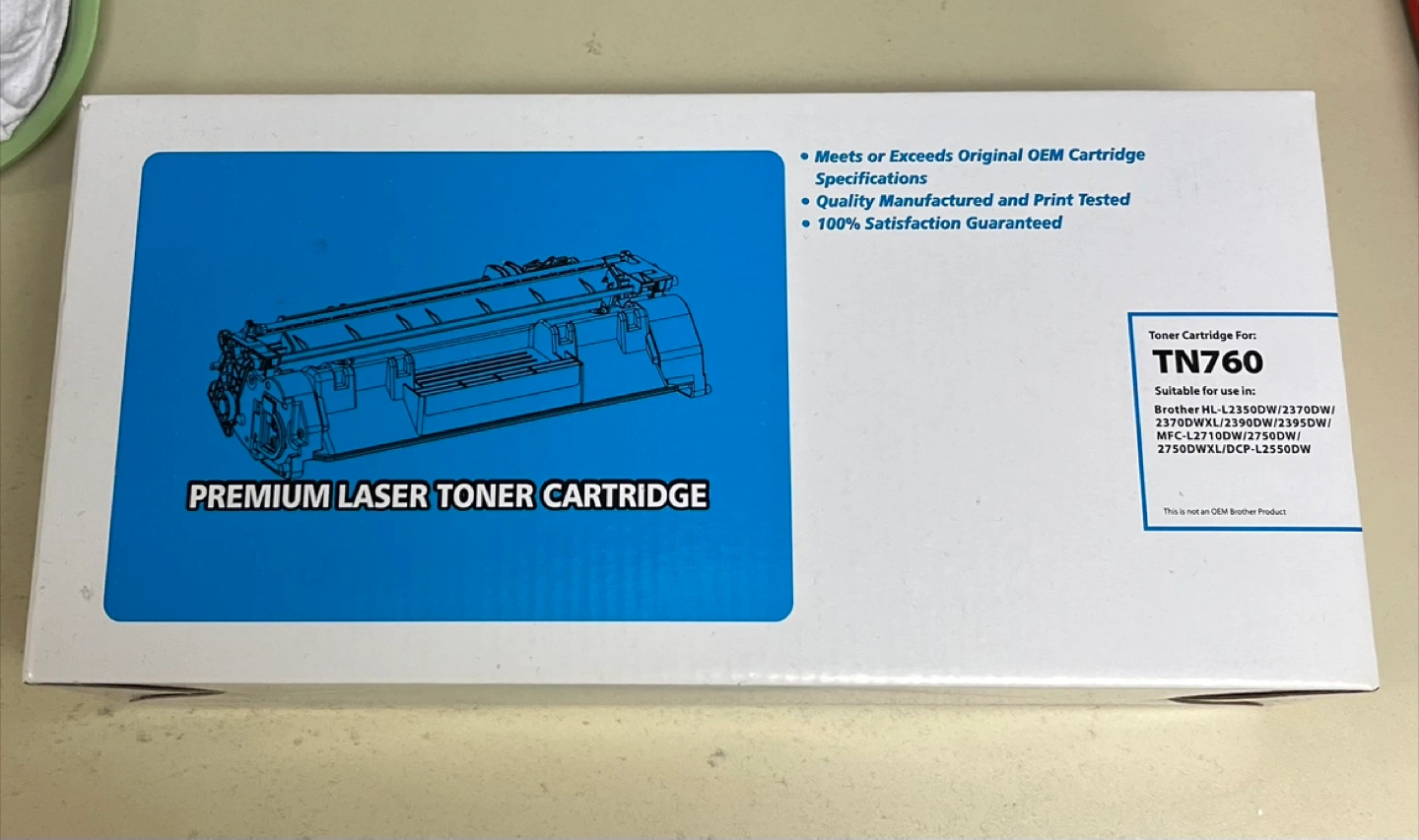 New, unopened premium laser toner cartridge. Compatible with various Brother HL-3330/3340/3350/3390/3395/DW7360. Meets or exceeds original OEM specifications. Quality manufactured and print tested.