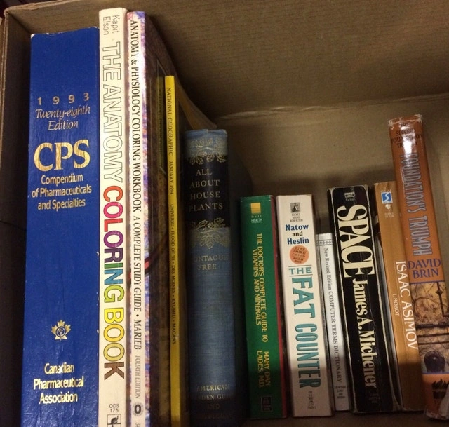 Selling a collection of 9 books and one magazine. Great for science students, sci-fi fans, writers, or home reference. Includes National Geographic January 1994, All About Houseplants, The Doctor’s Complete Guide to Vitamins and Minerals, The Fat Counter, The Medicine Show, Great Health Hints and Handy Tips, Computer Terms Dictionary, Space (historical novel by James A. Michener), I, Robot (SciFi Novel by Isaac Asimov), and Foundation’s Triumph (SciFi Novel by David Brin). Asking $20 for all. Located near the Burlington/Oakville border. No delivery. Cash or cashless payment accepted.