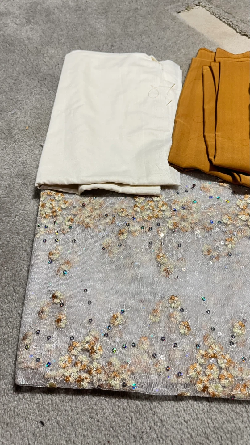 Selling a salwar kameez fabric set. Includes the top, bottom and dupatta. Perfect for stitching your own custom outfit! Price $80
