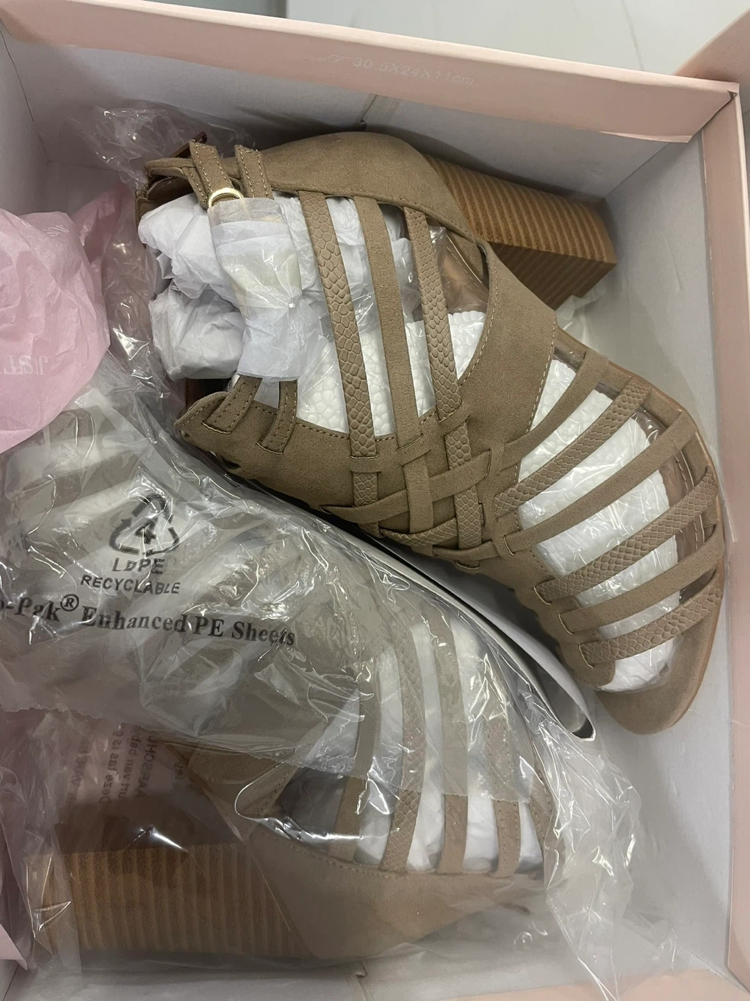 New JustFAB Darling Strappy Heeled Booties Taupe Size 9.5