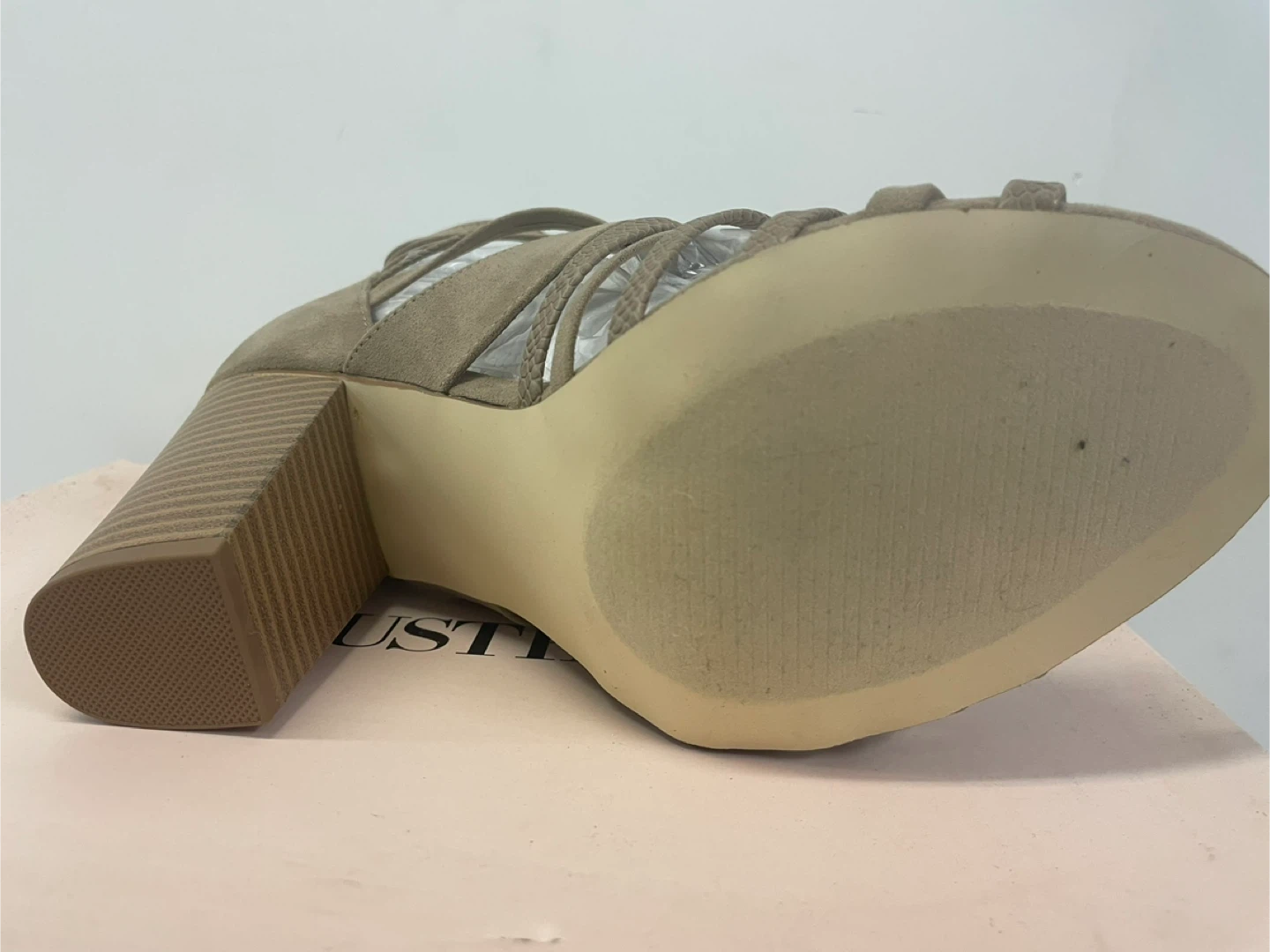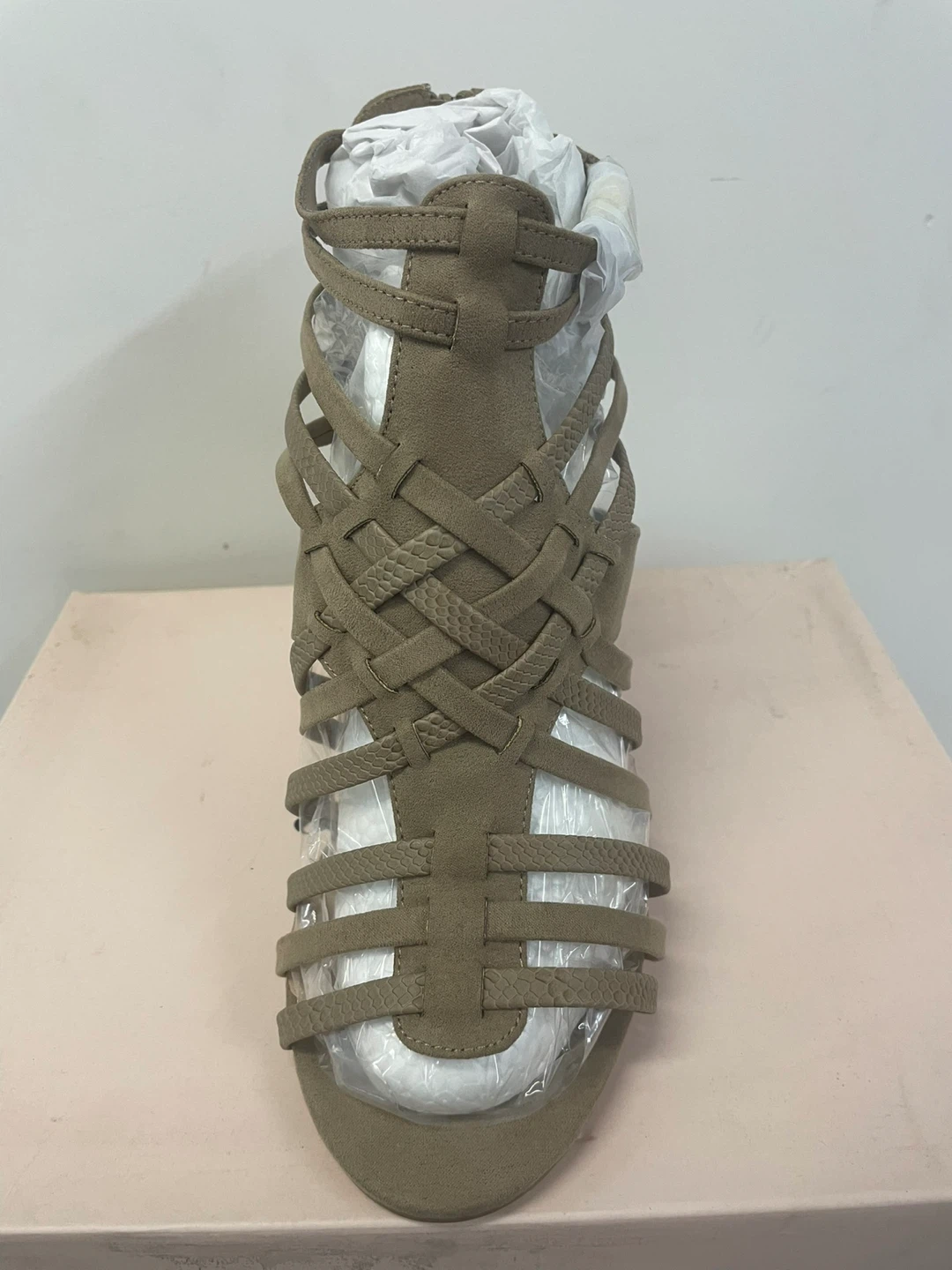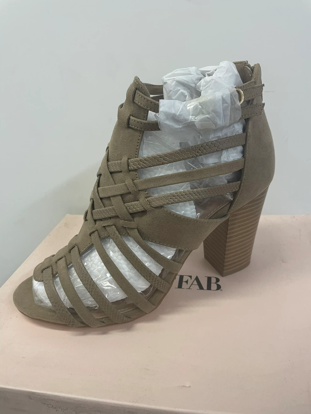 New JustFAB Darling Strappy Heeled Booties Taupe Size 9.5