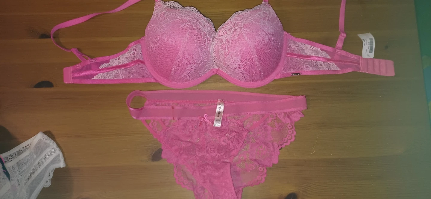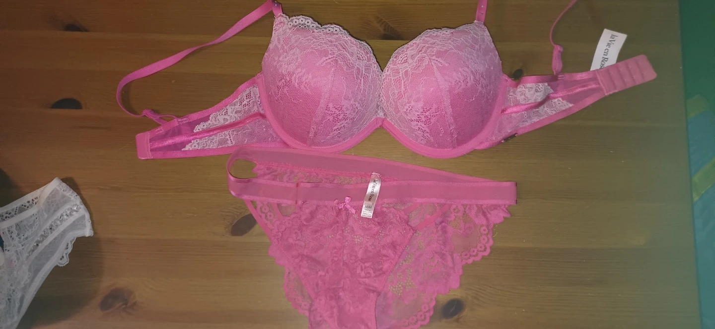 This pretty pink lace set includes a bra and matching thong. Bra features adjustable straps and a classic hook-and-eye closure. Panty has a comfortable elastic waistband with lace trim. It's a stylish addition to your lingerie collection!