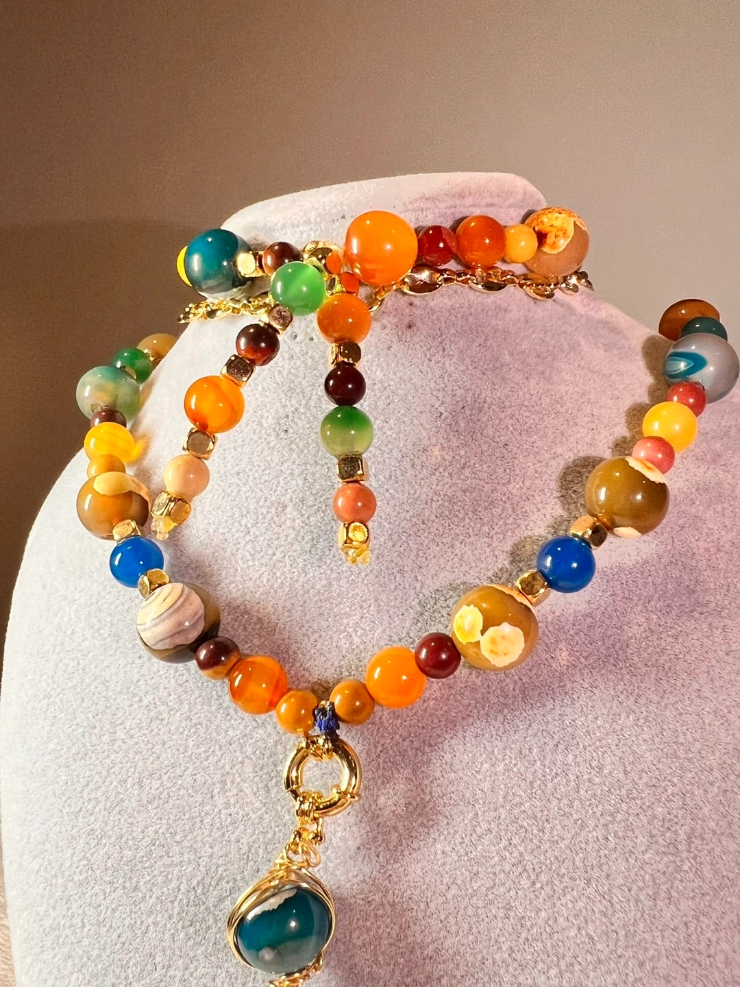 Beautiful Set of Bracelet and Necklace made of Agates, Jasper, Carnelian, and Onyx. Comes in a lovely white box, perfect for gifting or keeping safe. This necklace and bracelet are in excellent condition and ready to add a touch of elegance to your style.✨