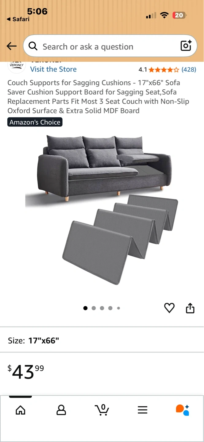 VERONLY couch support inserts for sagging cushions. 17" x 43” size.