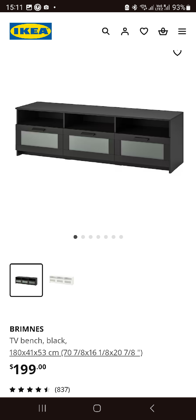 Selling a black IKEA Brimnes TV bench in great condition! It measures 180x41x53 cm (70 7/8x16 1/8x20 7/8 "). Originally bought for $199. Perfect for your living room setup!