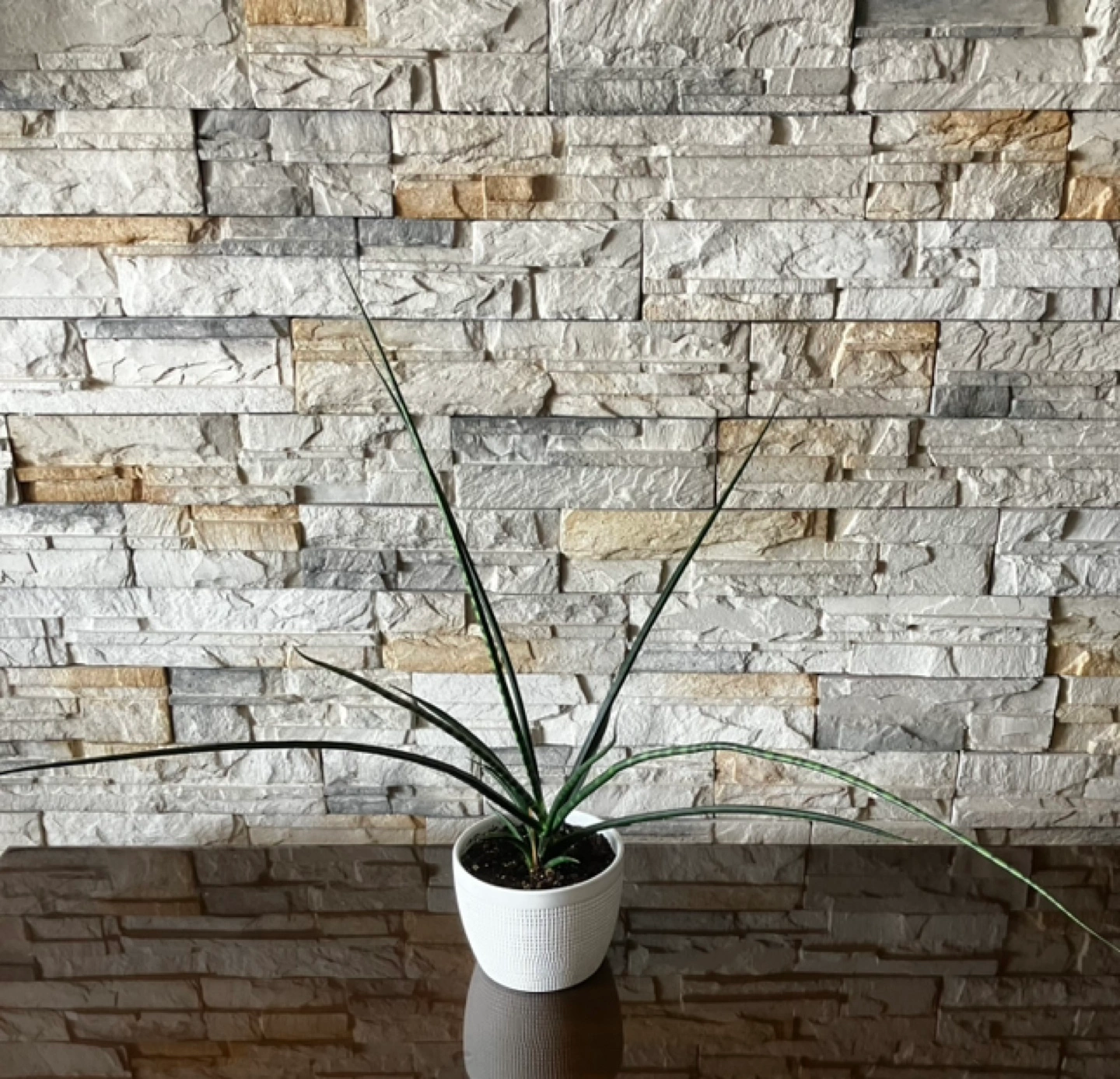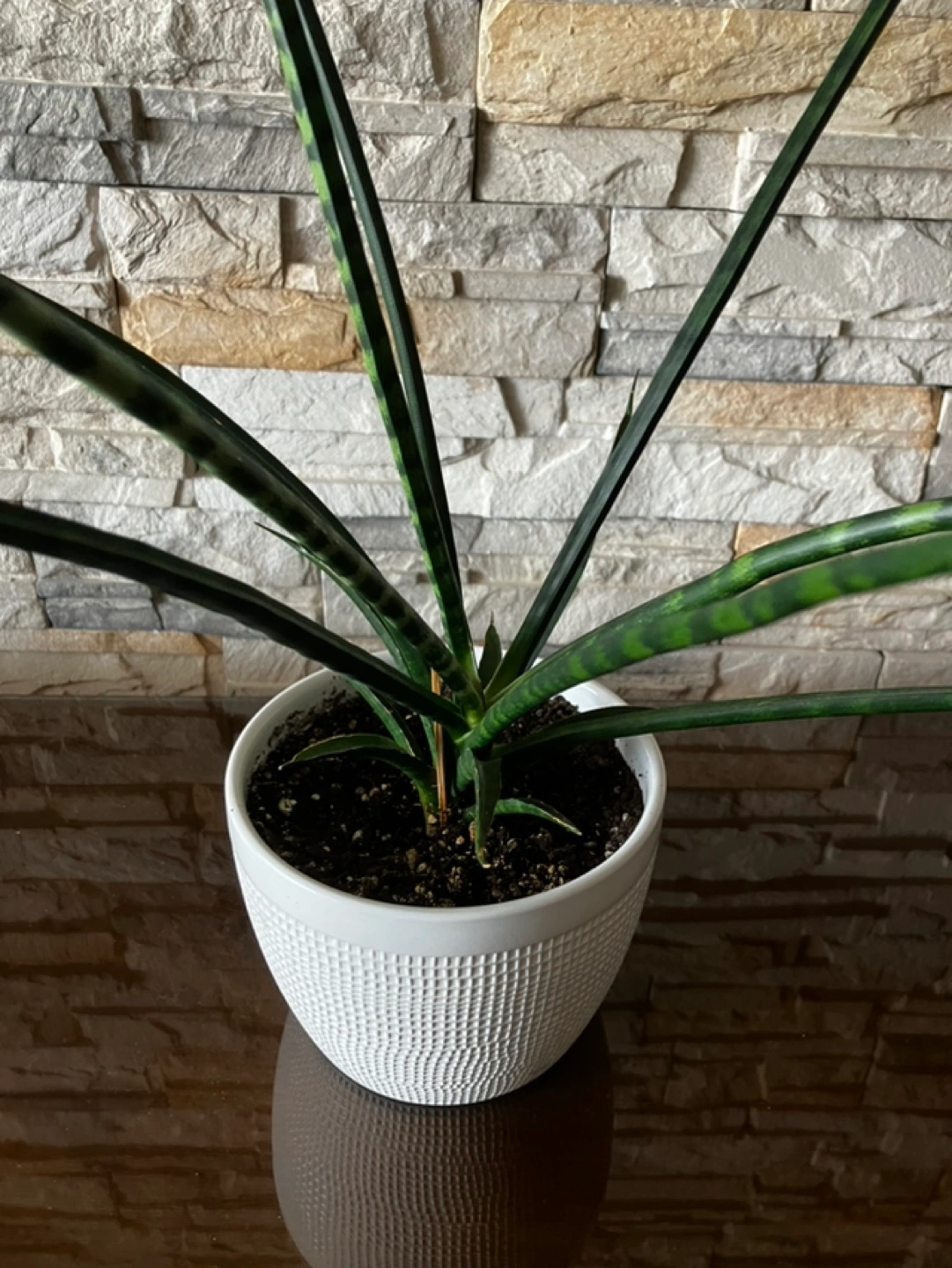Beautiful Sansevieria cylindrica, also known as African spear plant. Healthy and ready for a new home. Planted in a small, textured white ceramic pot. Low maintenance houseplant.