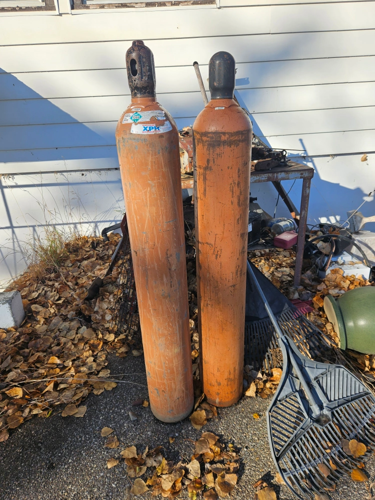 Two XPK gas cylinders. They show signs of wear, but are still functional for appropriate use.cert. expired last year need recertification