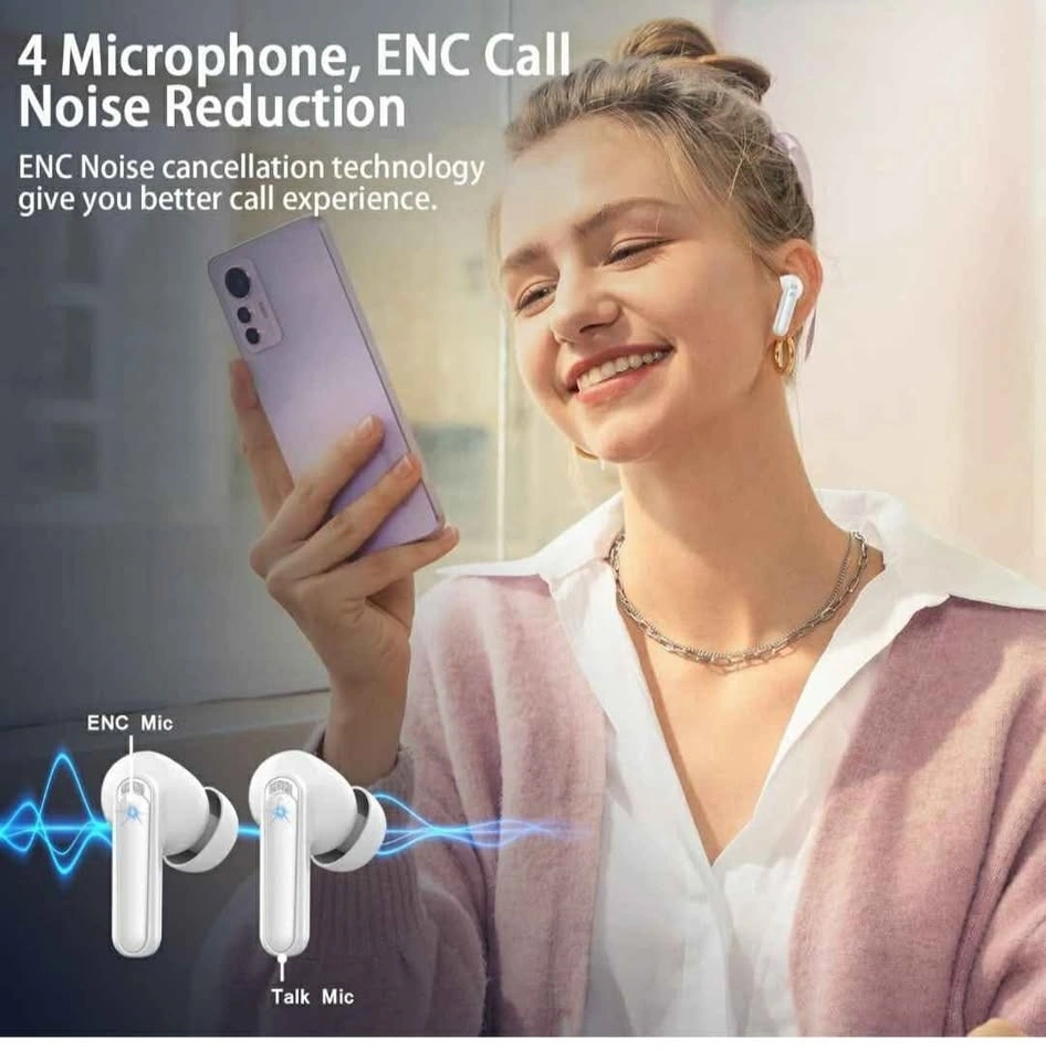 NEW Wireless Earbuds, Bluetooth Ear Buds 5.3 Mini HiFi Stereo with 4 ENC Noise Cancelling Mics Wireless Headphones, 48H in Ear Earphones IP7 Waterproof, USB C, LED, Sports Bluetooth Earbuds, White. Located in Crowsnest Pass.