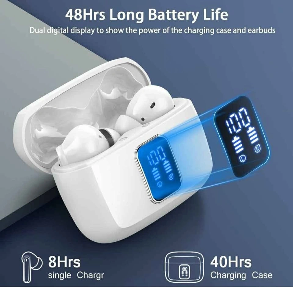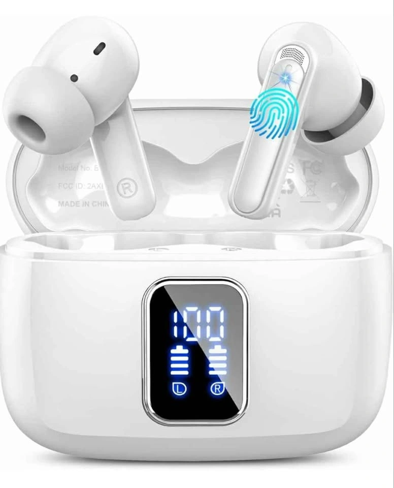 NEW Wireless Earbuds, Bluetooth Ear Buds 5.3 Mini HiFi Stereo with 4 ENC Noise Cancelling Mics Wireless Headphones, 48H in Ear Earphones IP7 Waterproof, USB C, LED, Sports Bluetooth Earbuds, White. Located in Crowsnest Pass.