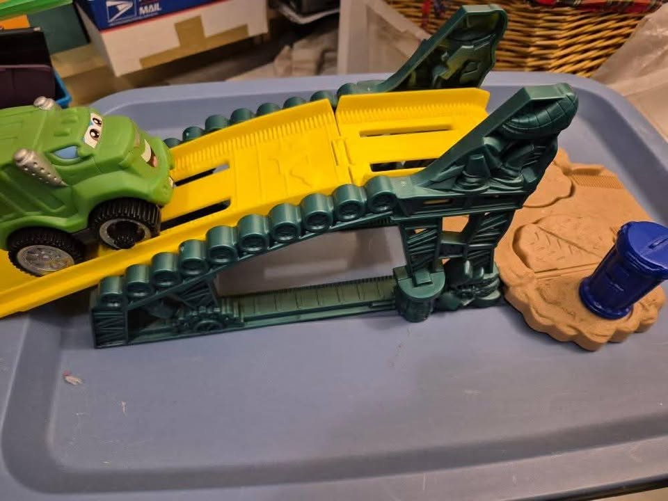 Excellent condition. Press the TONKA plate to activate your vehicle’s motor and send him up the ramp. He'll crash over the garbage can. Batteries not included. Thickson and Taunton. Pet and smoke free home. No holds. Fastest pickup.
