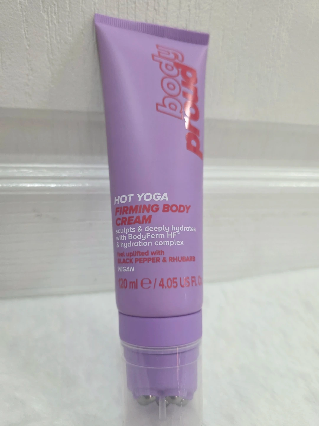 This Brand NEW Body Proud Hot Yoga Firming Body Cream sculpts and deeply hydrates. It's formulated with BodyFirm HF & hydration complex, and feels uplifted with black pepper & rhubarb. It's a vegan formula that comes in a 120 ml bottle.