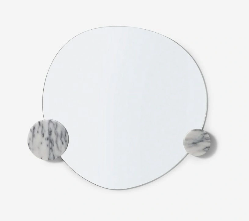 These stunning marble pieces hold up your mirror of choice. Large knob is 6" by 1.125", and the small knob is 4" by 1.125". Mirror not included.