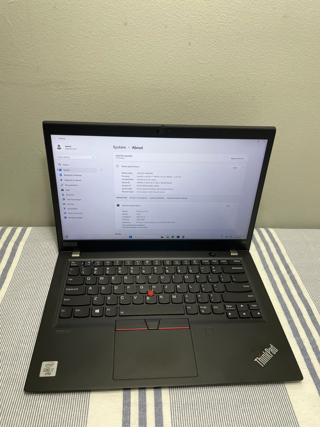 Selling a Lenovo Thinkpad T14s with Windows 11 Pro, laptop in excellent condition and fully functional charger.