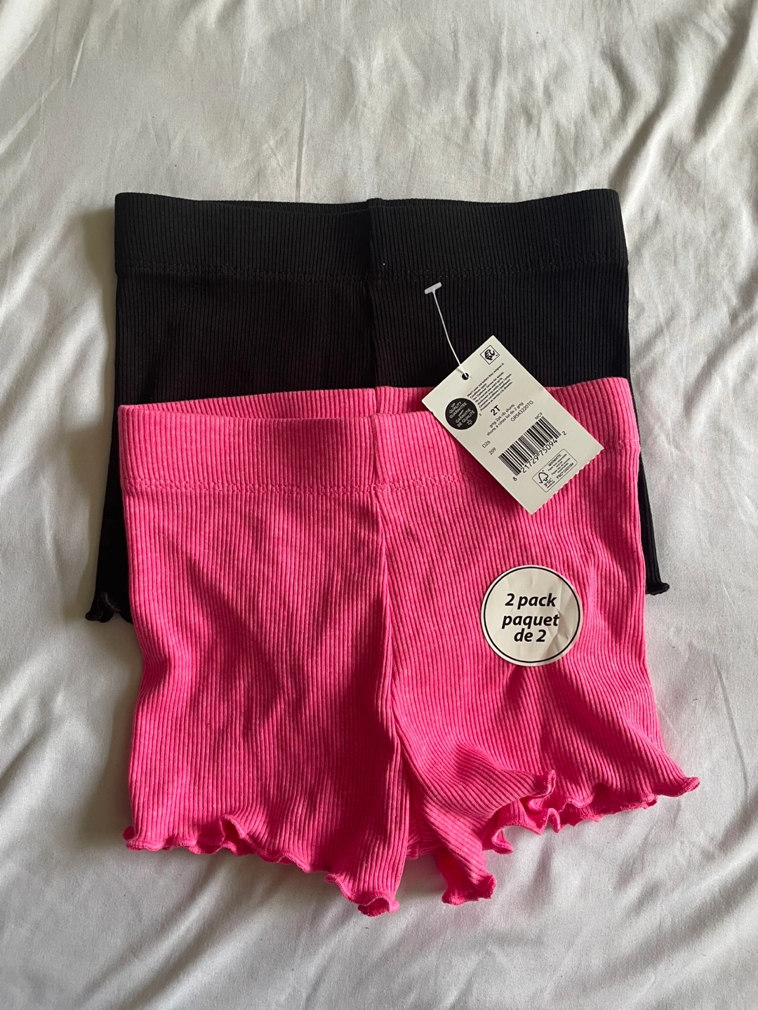 Girls 2 Pack Ribbed Shorts - Black & Pink