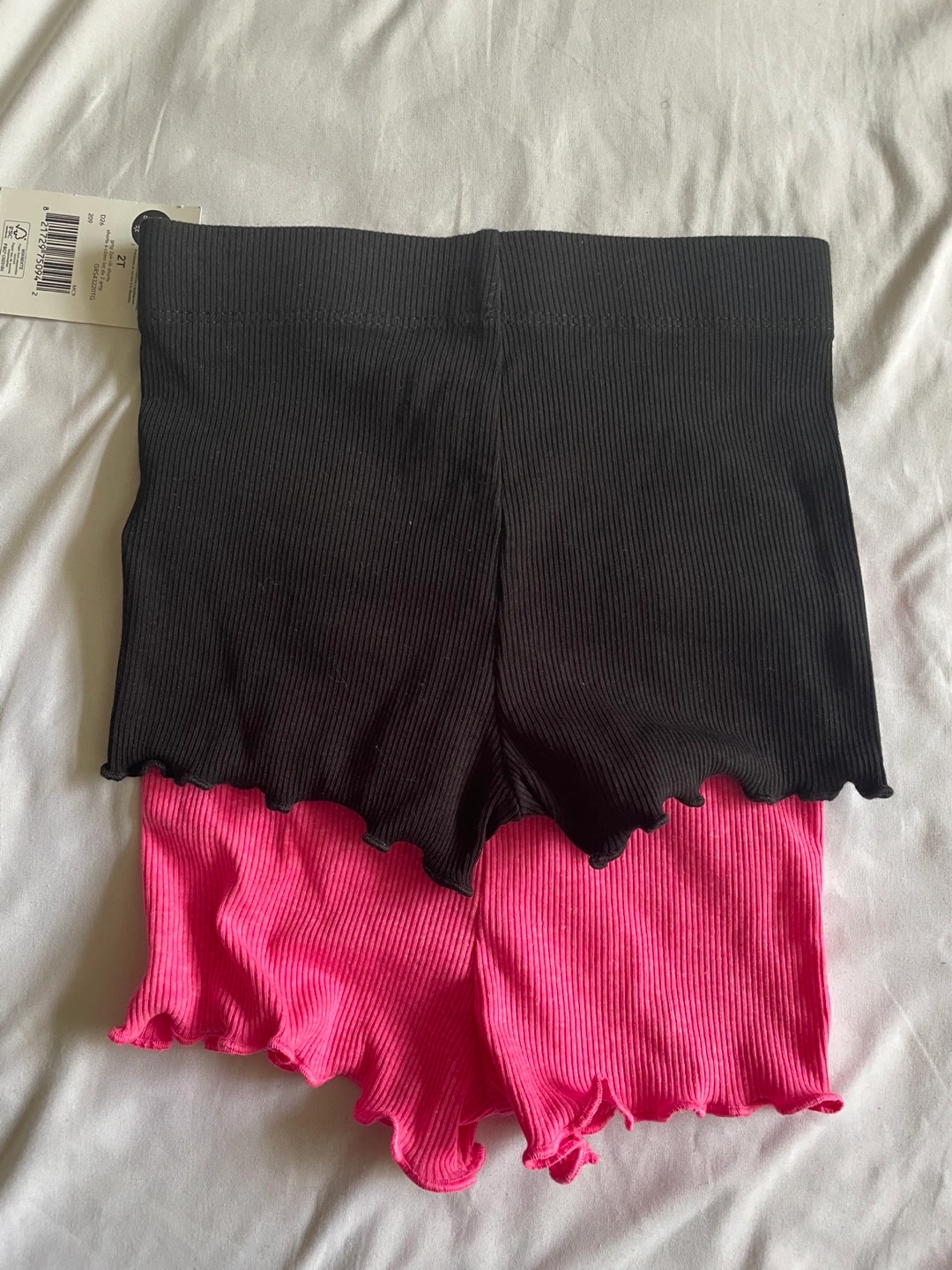 Girls 2 Pack Ribbed Shorts - Black & Pink