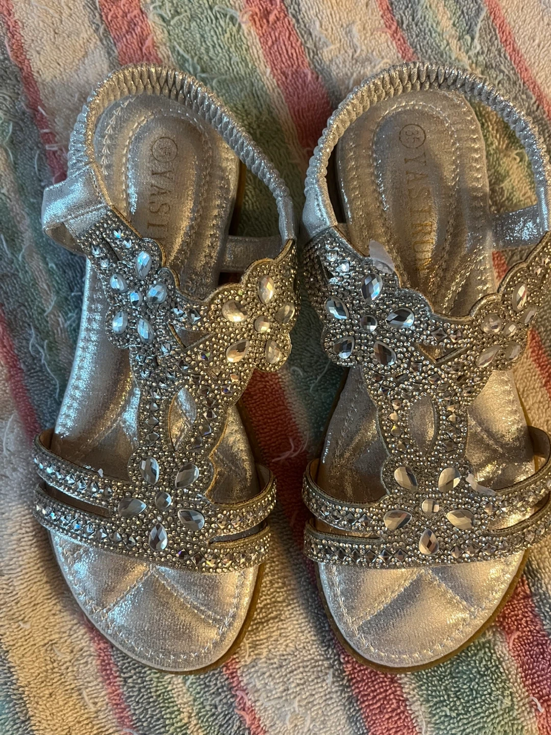 YASST Toddler Girls Silver Jeweled Sandals Size 5