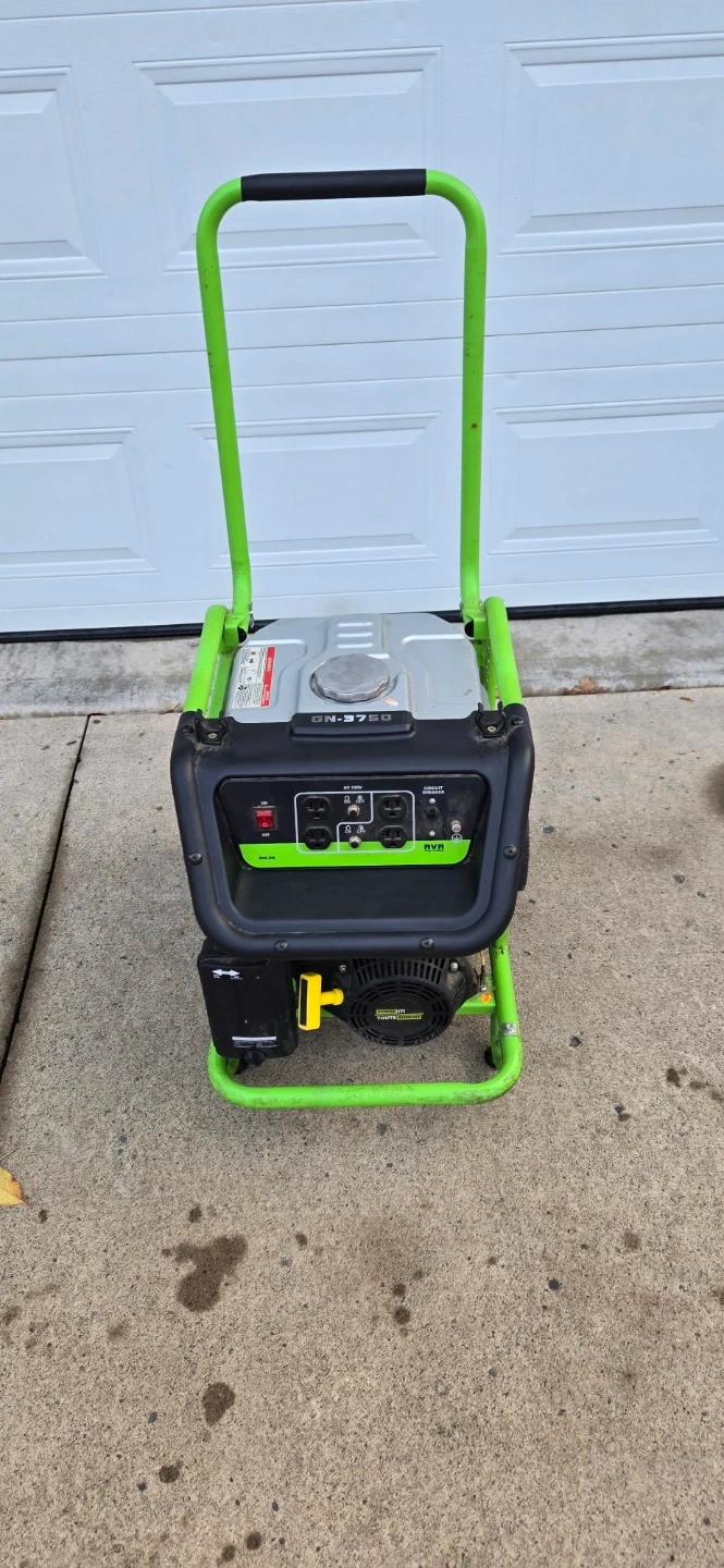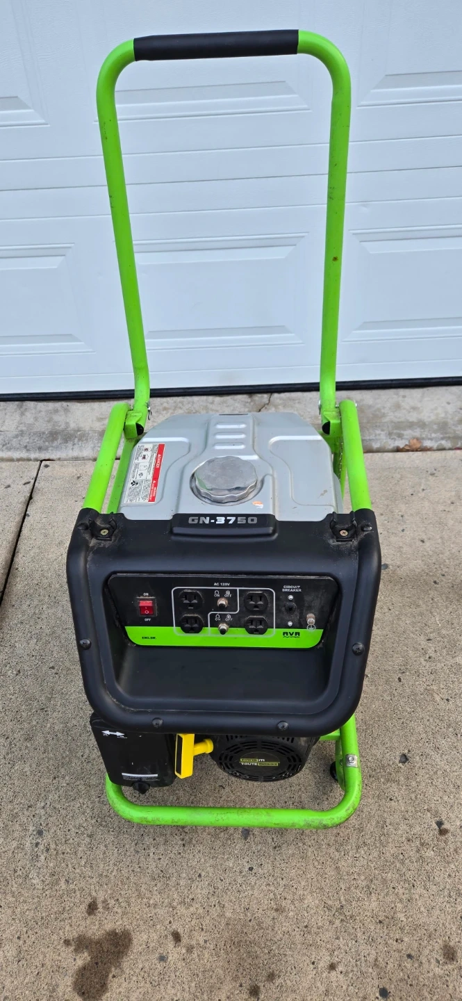 This GreenGen GN-3750 generator is a reliable power source. It has multiple AC outlets and a circuit breaker for safety. It's portable with wheels for easy transport. This generator is useful for camping trips or during power outages.