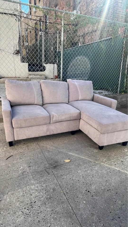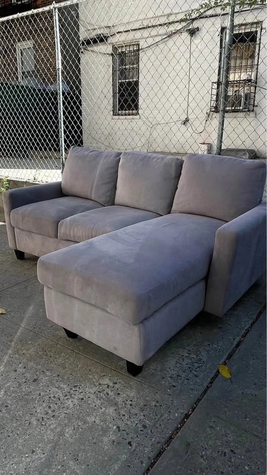 Dimensions are 78"x54". Ideal for a smaller apartment. Chaise can be placed on either side.