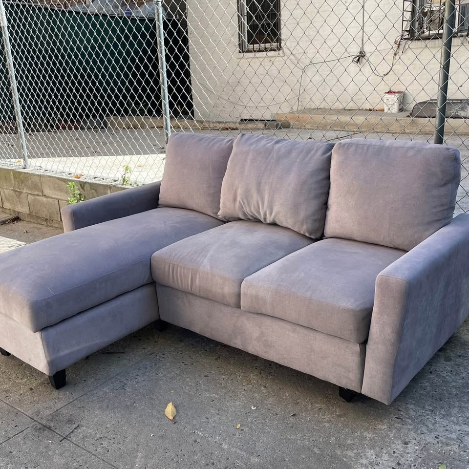 Dimensions are 78"x54". Ideal for a smaller apartment. Chaise can be placed on either side.