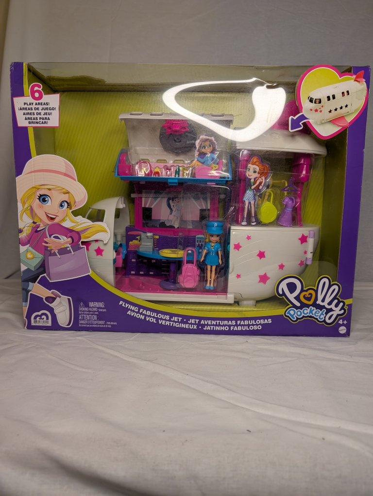 Selling a Polly Pocket Flying Fabulous Jet playset! It's a super fun airplane that opens up to reveal different play areas. Perfect for little ones who love imaginative adventures. Recommended for ages 4+
