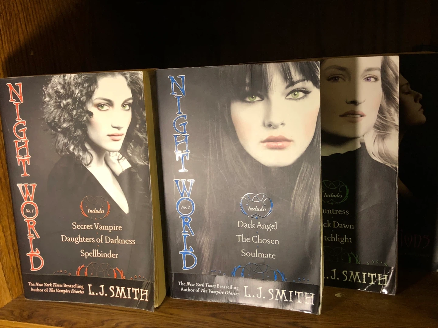 Three L.J. Smith Night World volumes, each housing three stories from the Night World universe. Also included is “Dark Visions”, which also holds three stories and is by L.J. Smith.