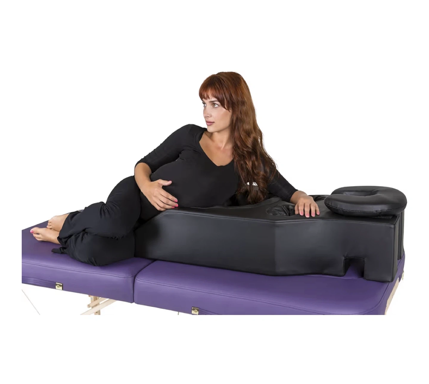 This set includes a big firm black pregnancy pillow for facedown massage or sleeping after a bbl - unfortunately, the pleather cover has started peeling but your own hygiene. I recommend that you put it inside a duvet envelops sheet anyway.