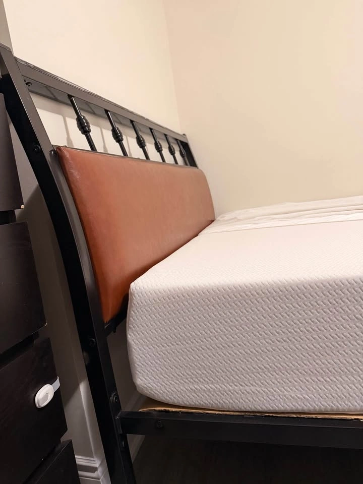 Both frame and mattress are like new. The mattress was always used with a protector and is in excellent, firm condition. The bed frame can be fully dismantled with Allen keys. Moving sale. I have other listings like a couch and a corner couch.