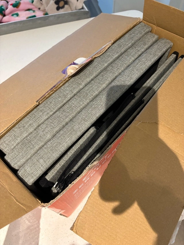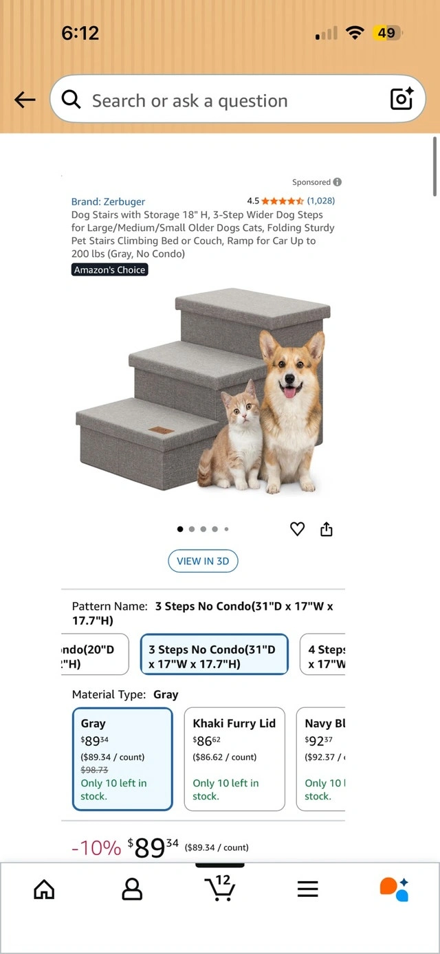 These Zerbuger dog stairs with storage are new. They feature three steps in a grey fabric, and each step opens up for storage. They are foldable and can be easily stored when not in use. These stairs are perfect for small to medium-sized dogs or cats, providing a safe and easy way for them to reach their favourite spots. If the ad is up, it's available! Cash accepted.