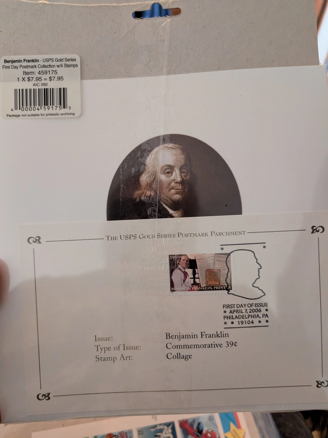 Issued in 2006 by the USPS, the Postal Service recognizes the 300th anniversary of the birth of Benjamin Franklin (1706-1790), an American icon whose diverse accomplishments as a printer, postmaster, scientist, and statesman earned him a cherished place in the history of our nation.