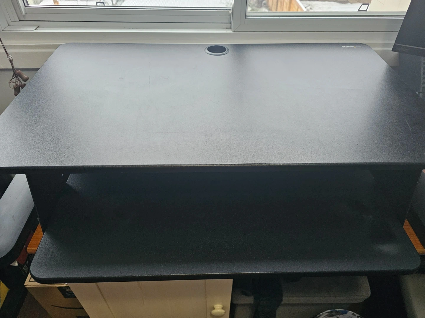 Selling a standing desk converter from StarTech.com! It's in great condition and ready to help you work more comfortably. Perfect for turning any desk into a standing workstation.