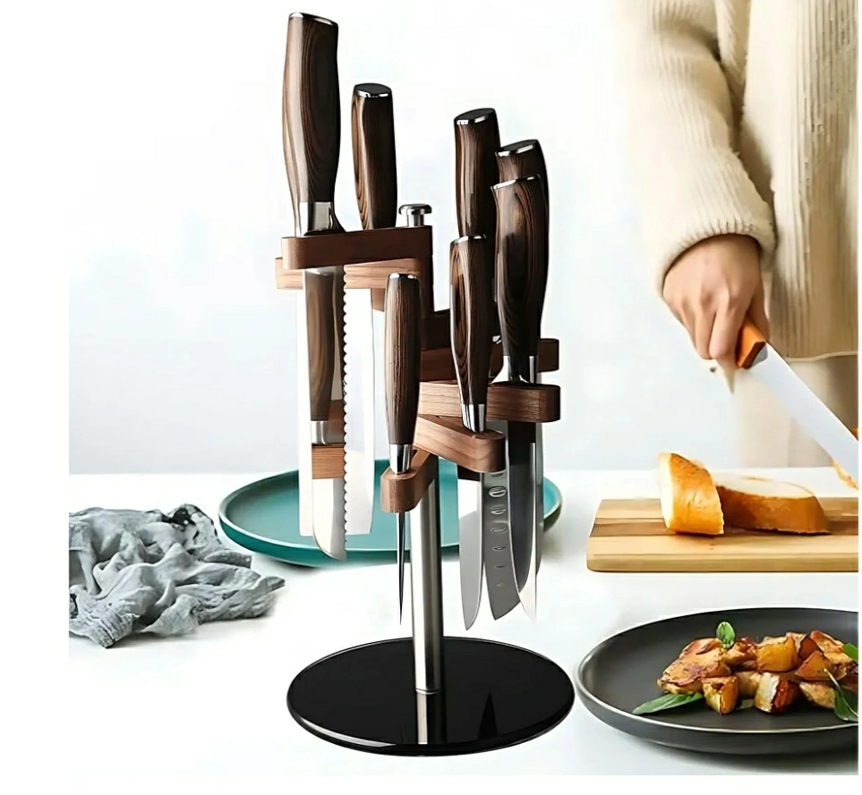 Rotating Wooden Knife Block Stand