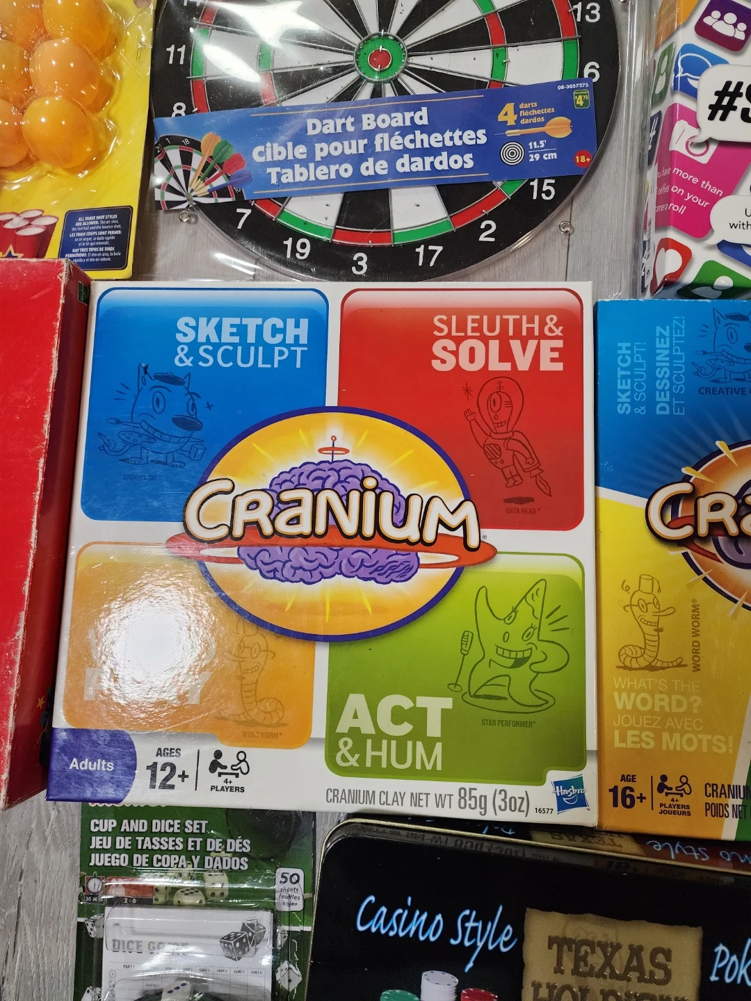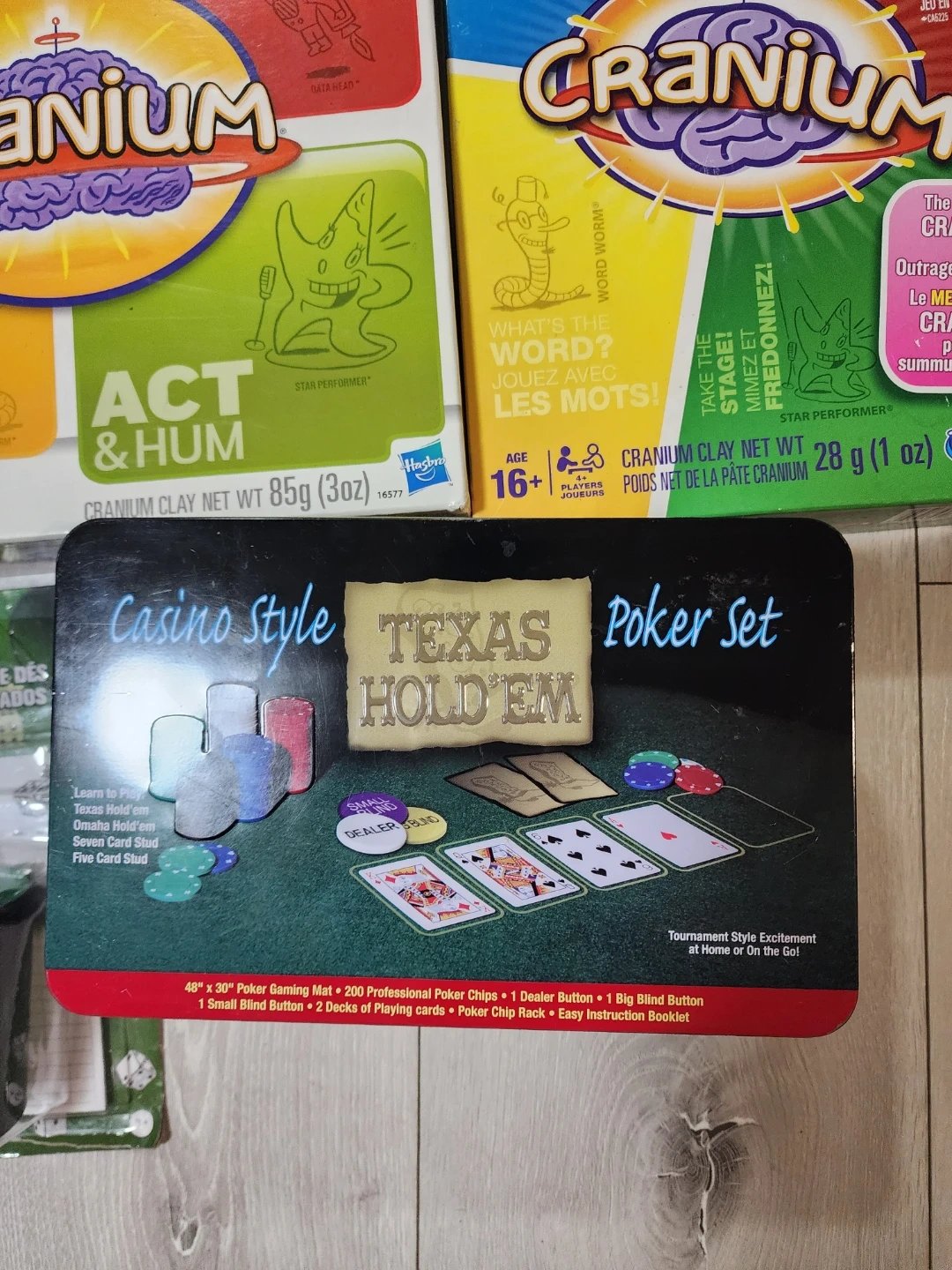 Selling a variety of board games including Cranium, Clue, #SocialBingo, and a casino-style Texas Hold'em poker set! Great for family game nights or get-togethers with friends
