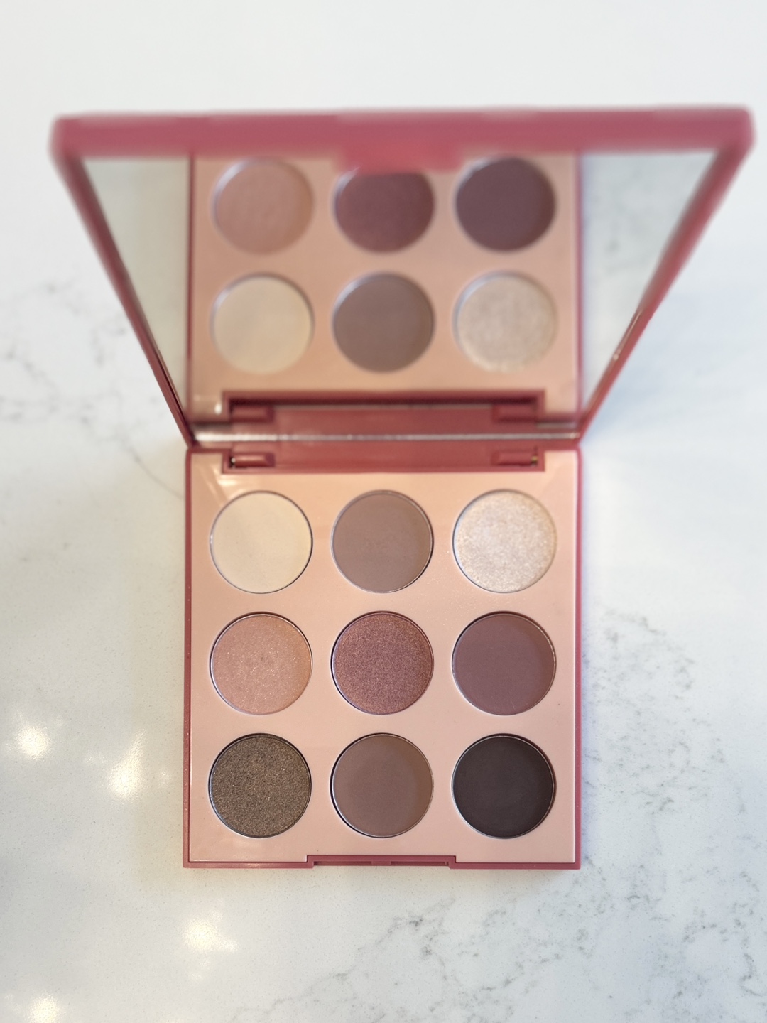 Morphe eyeshadow palette featuring a variety of rose-toned shades, perfect for creating soft and romantic looks.