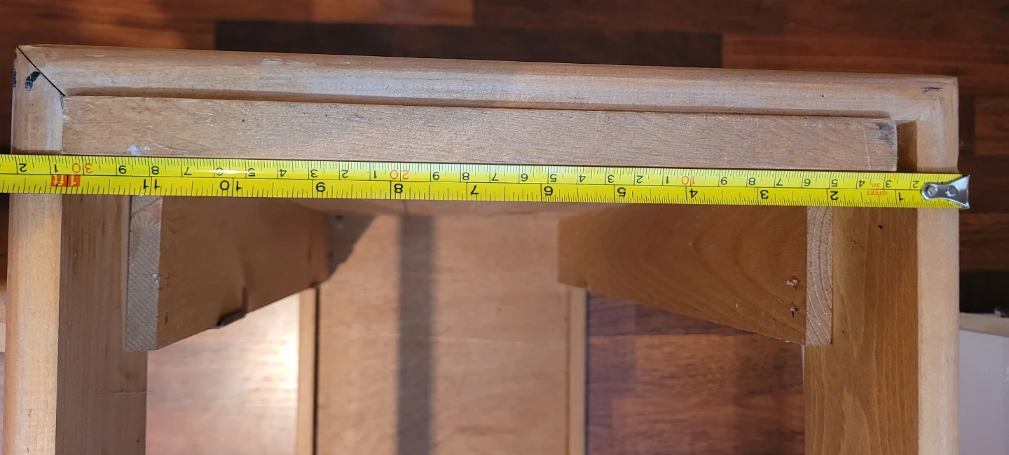 Wooden pine stand with two doors. It measures 36 inches in length. This stand is suitable for a 29 gallon or 30 gallon fish tank. See photos for measurements.