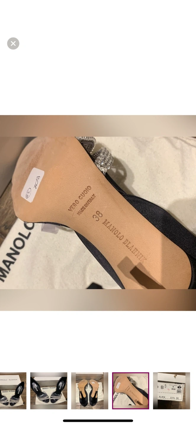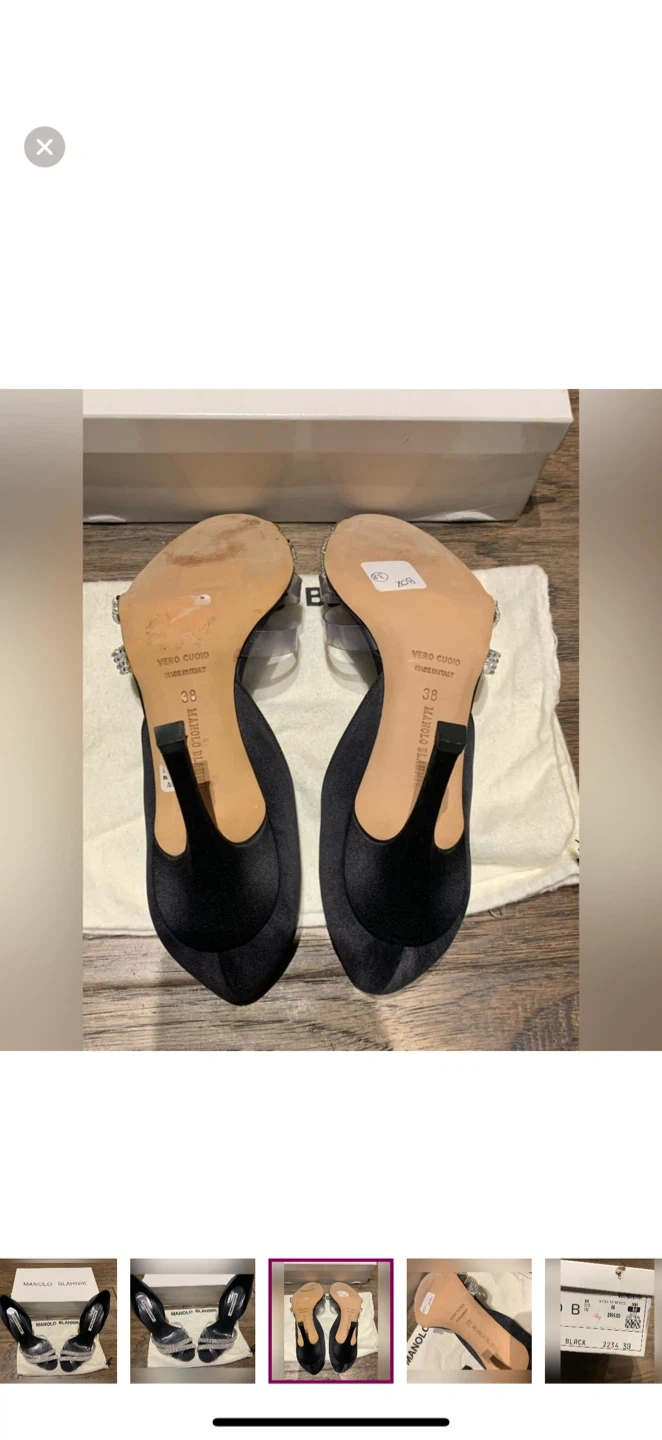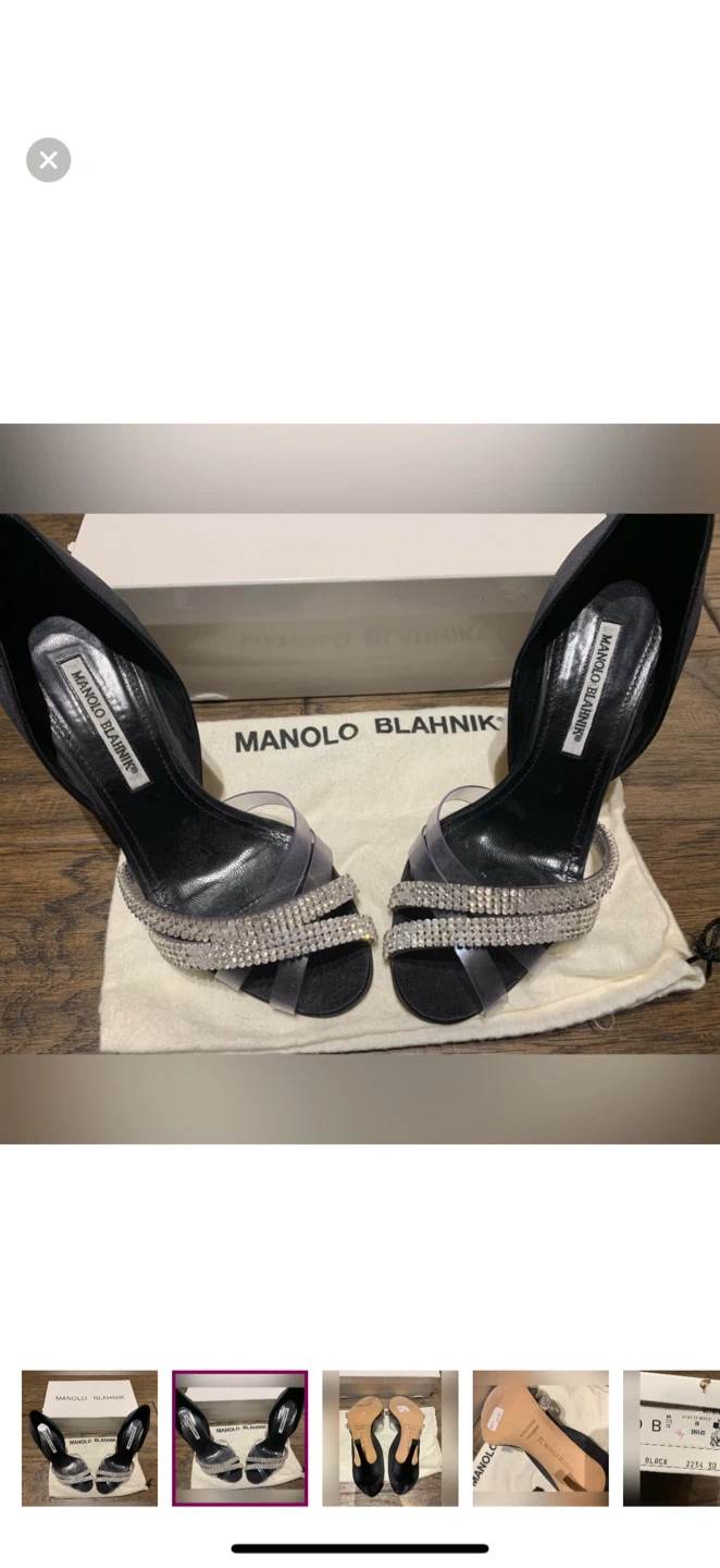 Selling a pair of Manolo Blahnik heels in black, size 38. They come with the original box and dust bag. The heels feature a beautiful crystal embellishment. Originally bought at Holt Renfrew for $995