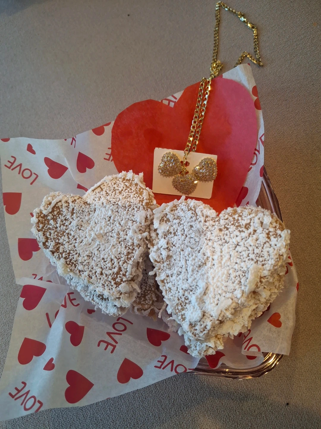 Heart-Shaped Cookies with Rhinestone Earrings & Necklace Set