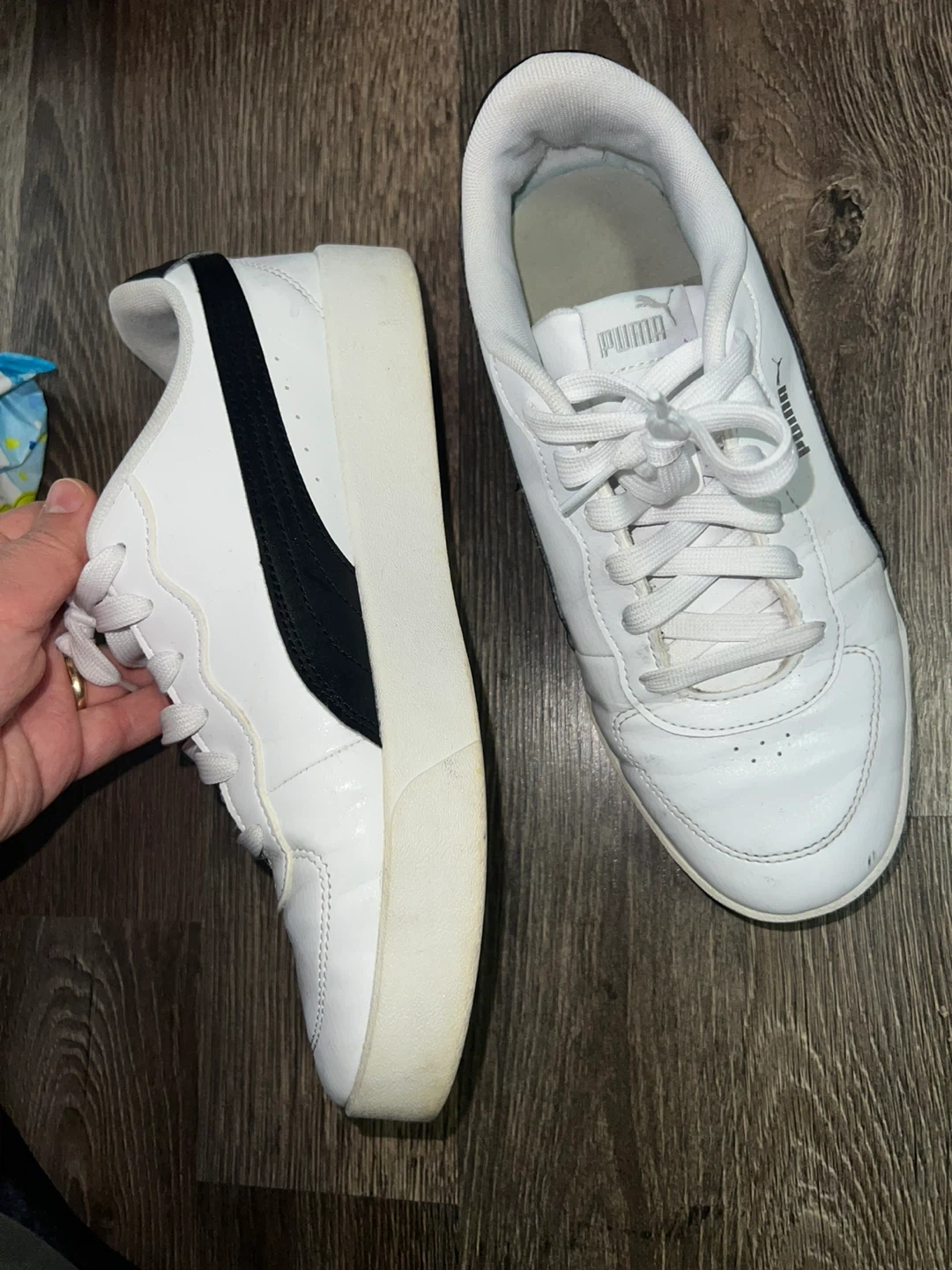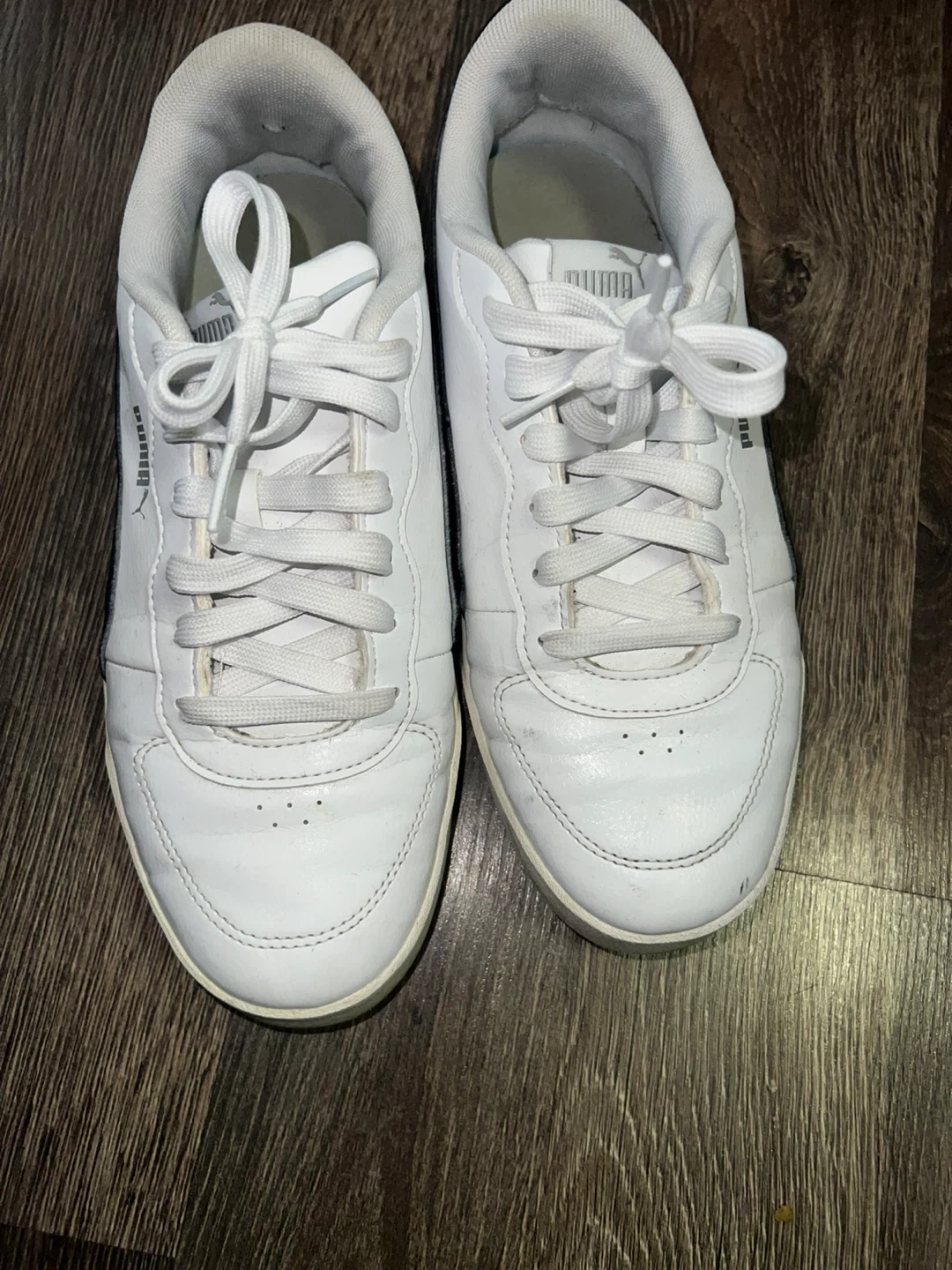 Buy & SellPuma White Leather SneakersPuma White Leather Sneakers$18White Puma Size US 9, UK 6.5, EUR 40. These shoes are a classic low-top design with lace-up closure.ConditionGoodBrandPumaWHERE TO MEETCheck LocationView MapSELLERElaQueensway636 reviews0 chats·1 favorites·33 viewsSEND CHAT TO SELLERHi Ela! I’m interested in your listing.Hi Ela! I’m interested in your listing.Get the Karrot app to chatSign In to chat