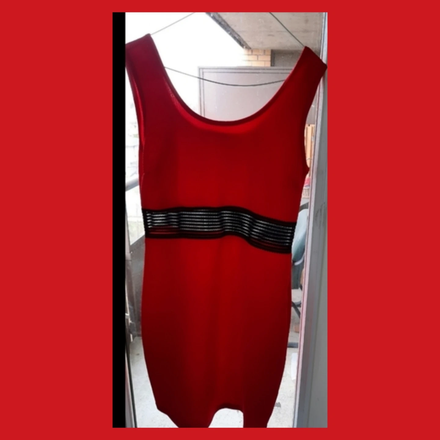 Red Sleeveless Dress with Black Band
