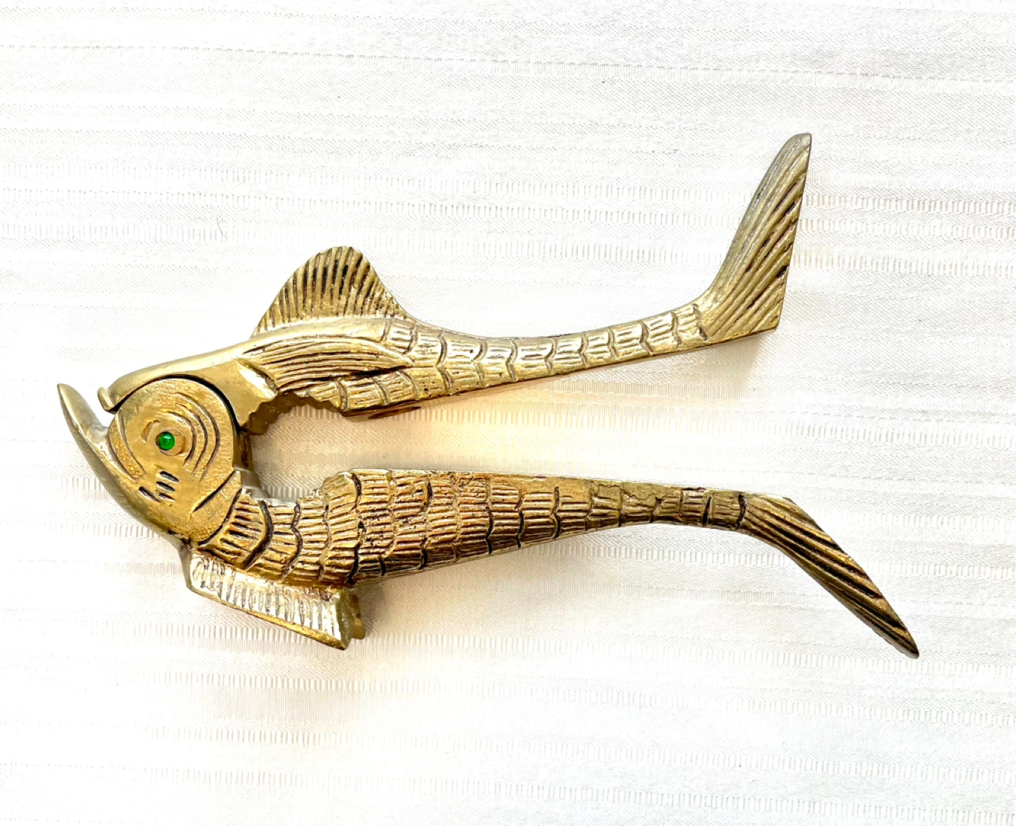 Vintage Golden Solid Brass Fish Nutcracker 🏆