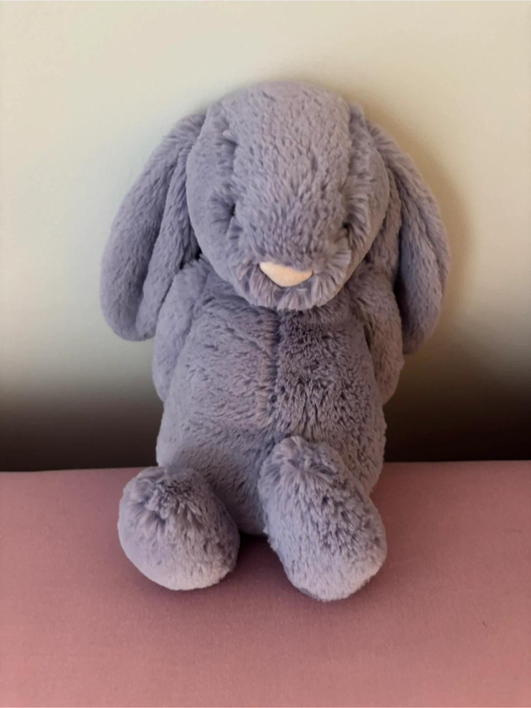 This is a Jellycat Bashful Bunny plush toy in a lovely lavender colour. It's made from super-soft fur and has those signature long, floppy ears. This cuddly bunny's perfect for snuggles and playtime!