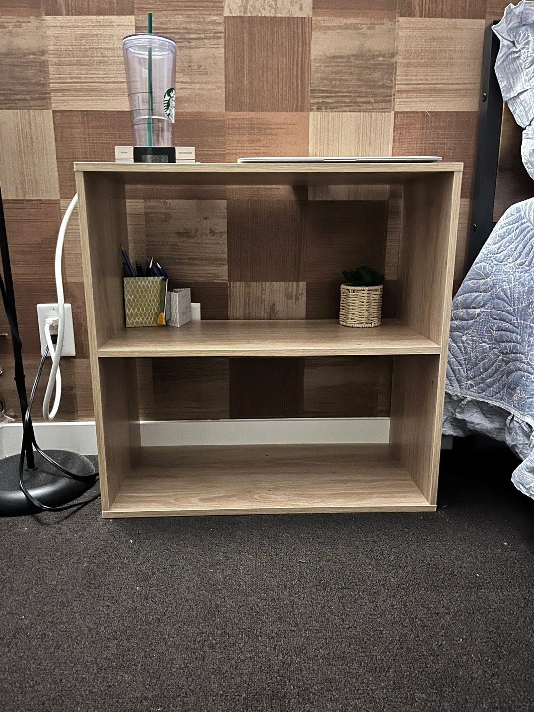 Short shelf, used as a side table/night stand. Minimal weight, great storage. Selling because I need to make some space.
