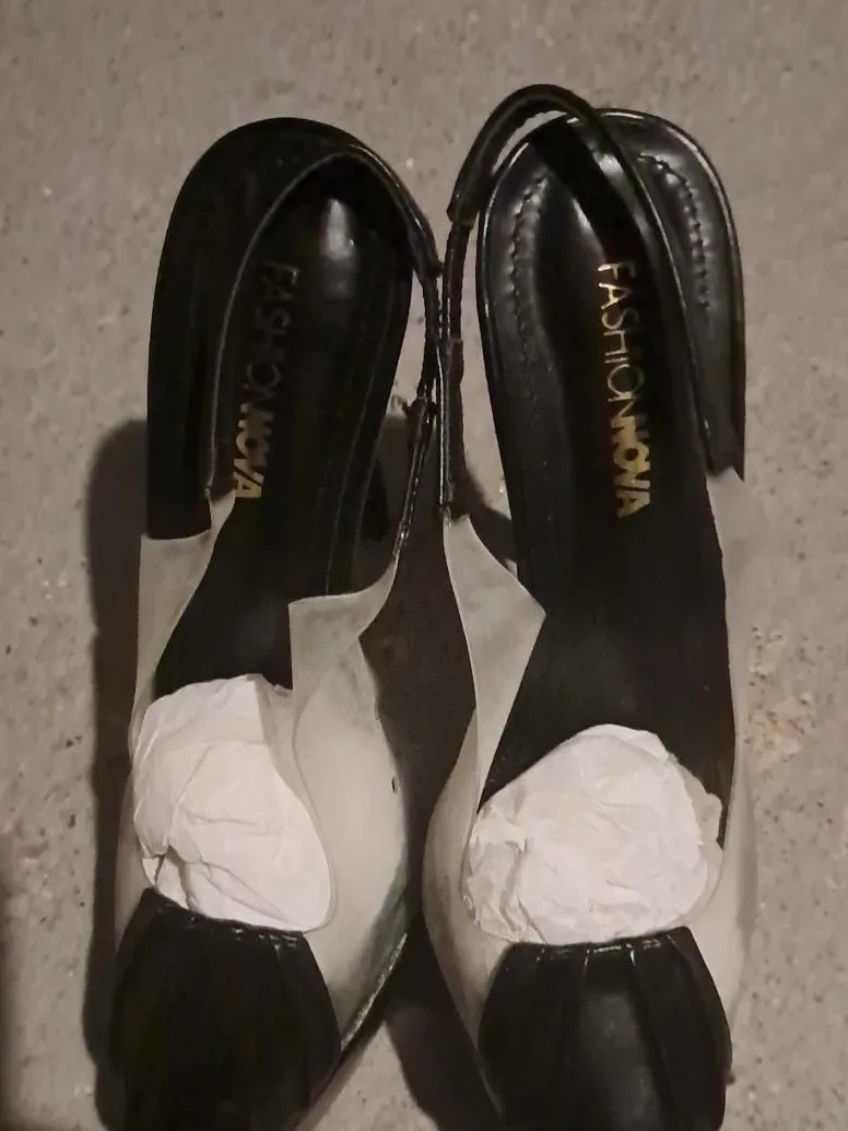 Fashion Nova slingback heels with a clear PVC detail. These heels feature a black toe cap and strap. Perfect for dressing up any outfit!