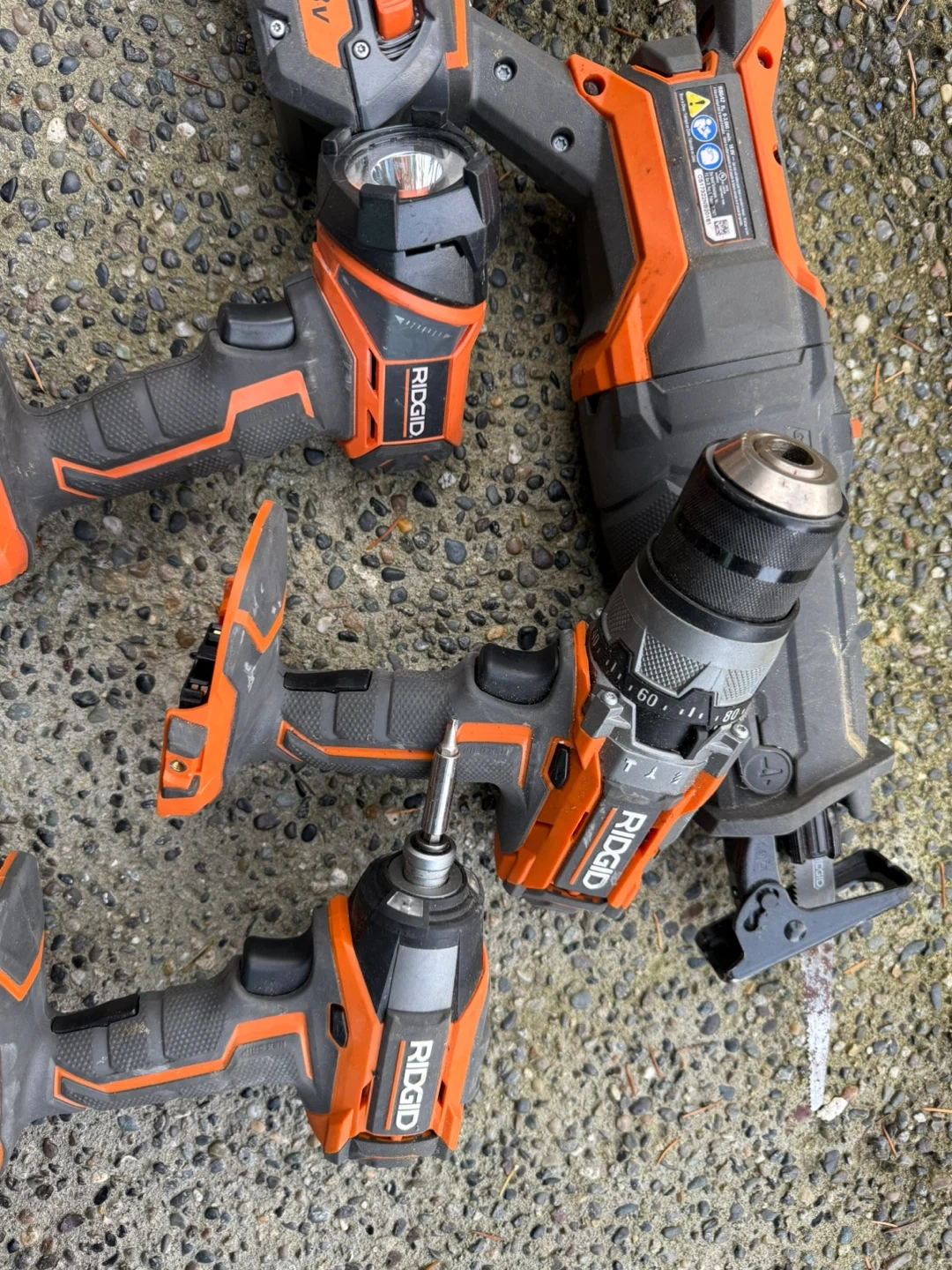 Selling a set of Ridgid 18V power tools. Includes a drill, saw, and light. Great for any DIY projects or professional use!