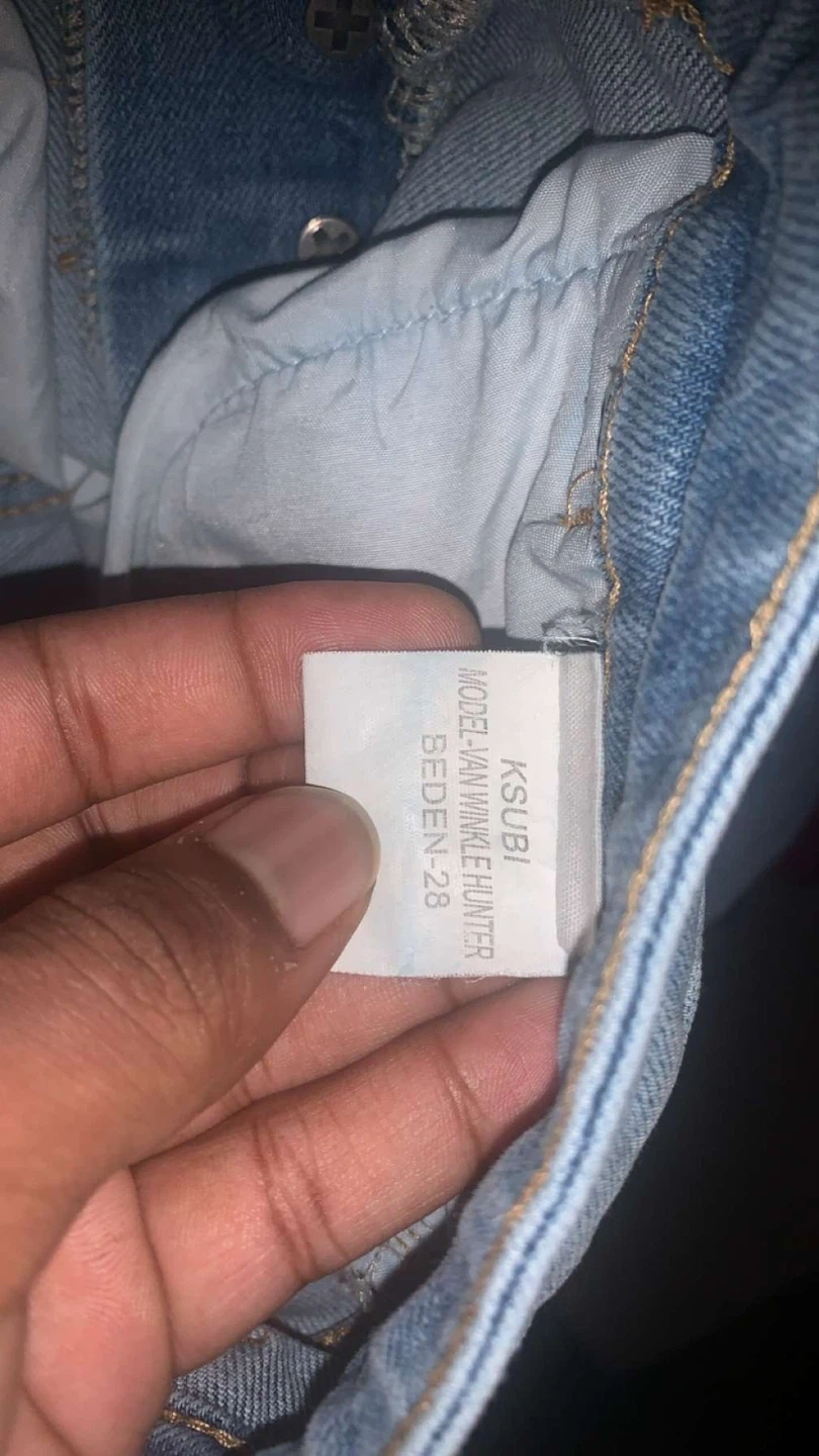 These are Ksubi Van Winkle Hunter jeans in a size 28. They're made of 98% cotton and 2% elastane. Features a pattern of small crosses all over.ill trade also