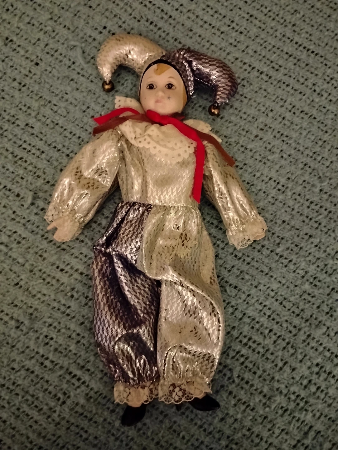 VINTAGE! SILVER AND BLUE COURT JESTER PORCELAIN DOLL