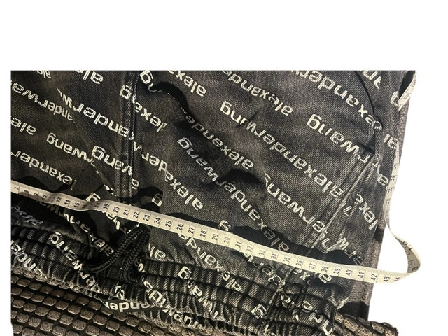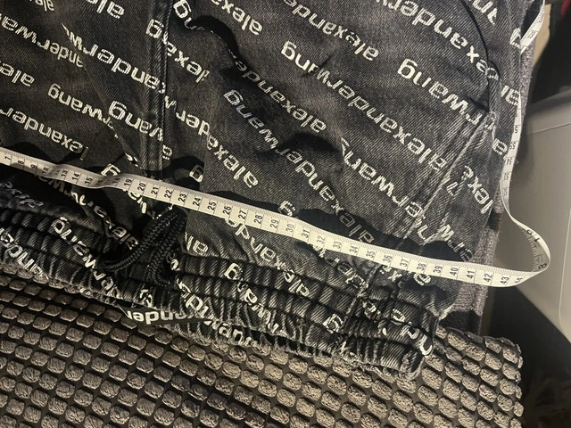 I'm selling these gently worn Alexander Wang black pants, size small, featuring a bold white logo print. They're in good condition and ready for a new home. These pants are stylish and comfortable, perfect for casual wear or dressing up!