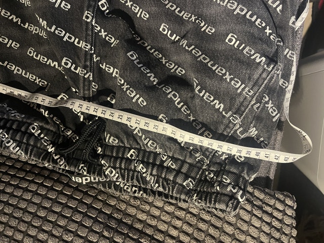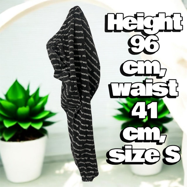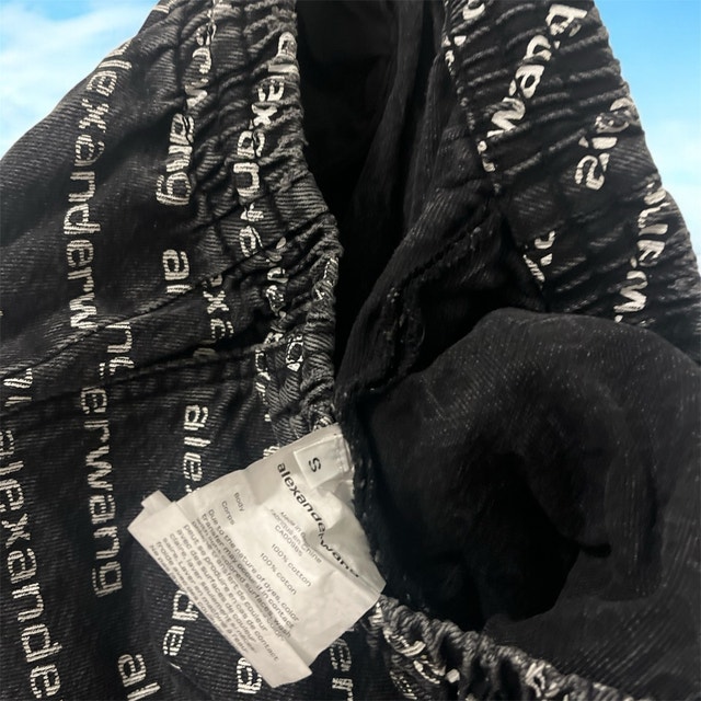I'm selling these gently worn Alexander Wang black pants, size small, featuring a bold white logo print. They're in good condition and ready for a new home. These pants are stylish and comfortable, perfect for casual wear or dressing up!