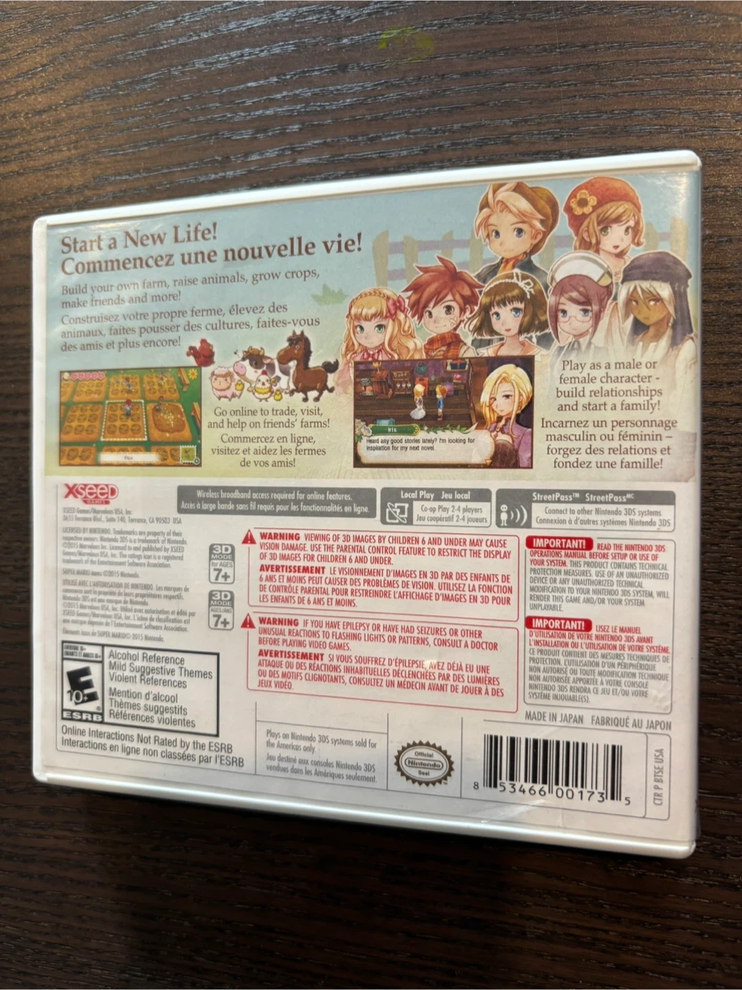 This is the Story of Seasons game for the Nintendo 3DS. It includes the original game cartridge and instruction booklet. It's rated E for Everyone.