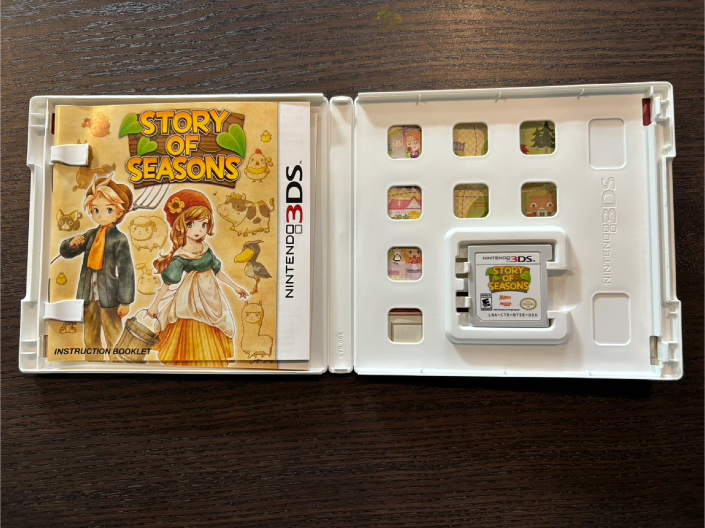 This is the Story of Seasons game for the Nintendo 3DS. It includes the original game cartridge and instruction booklet. It's rated E for Everyone.